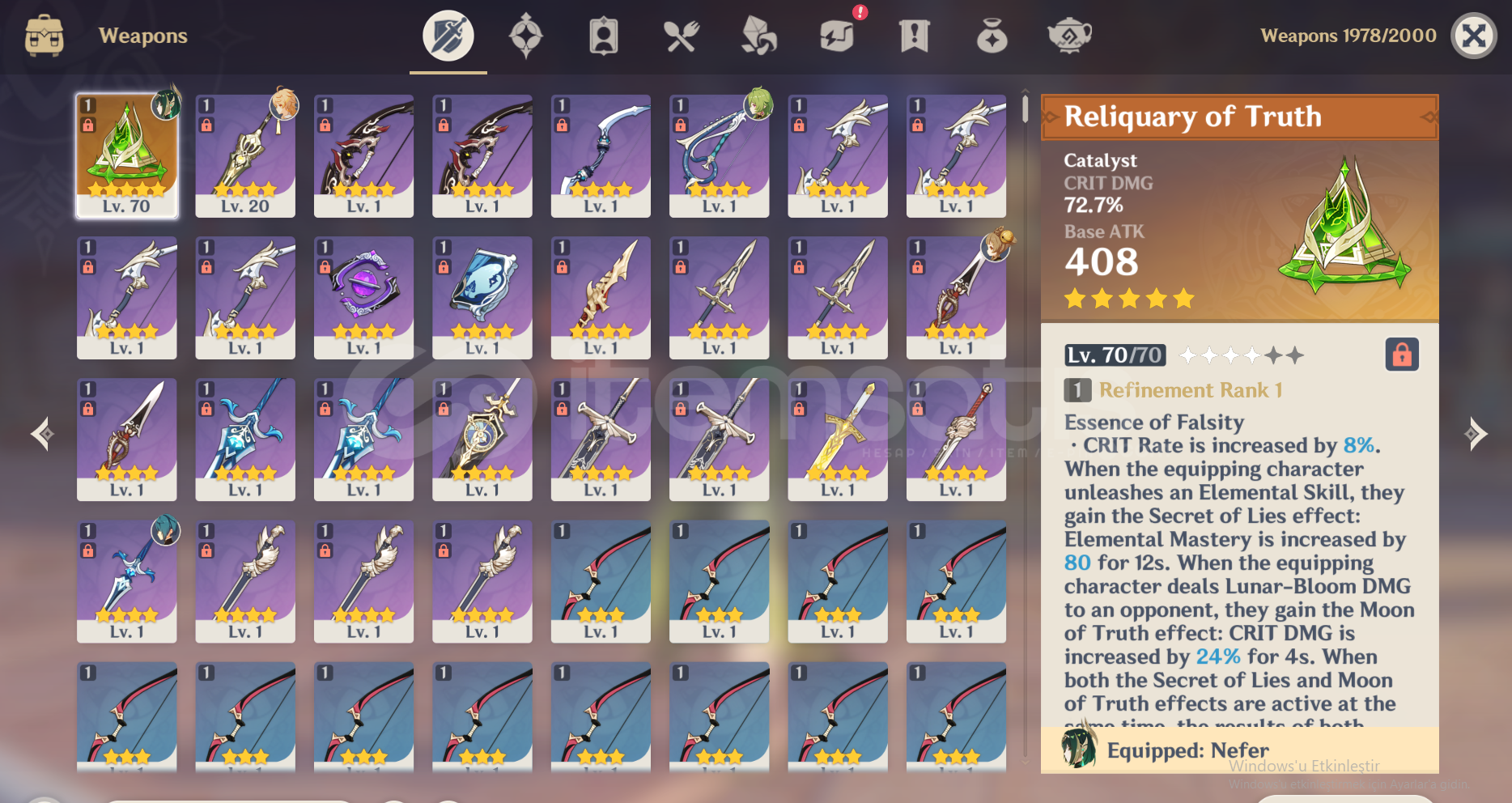 Devamlı olarak hesap kasılıyordur. Standard karakterler: Mizuki, Keqing, C1 Qiqi.-Süreli Event Banner: 2 pity+rateup.Silah Banner: 3 pity.Standard Banner: 36 pity.-Tüm satışa sunulan hesaplarımız, %100 tarafımızca garanti altındadır.Her bir hesap, e-posta değişimi ile birlikte yalnızca Avrupa (EU) sunucusunda oluşturulmuş şekilde teslim edilmektedir.Hesaplar tamamen f...