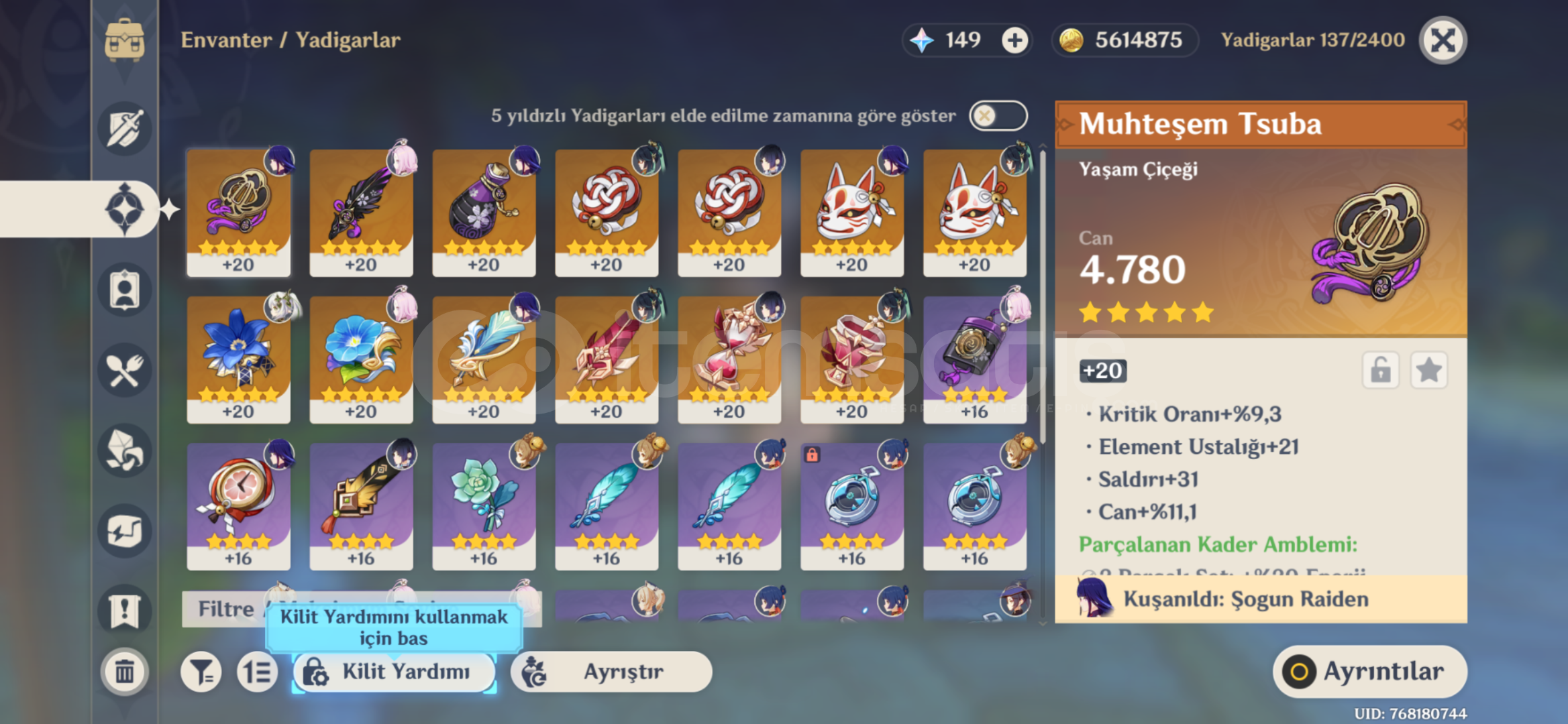 Tüm bölgeler 100 bazıları 98 civarında25 pity149 primos8 adet 5 yıldızlı karakterRaiden kasılmış...