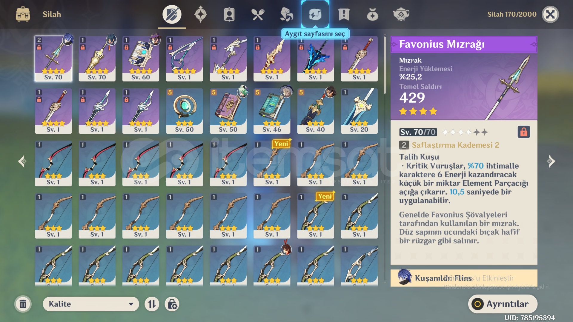 Hesapta Flins, Dehya ve Mona bulunmaktadır. Flins ve Dehya, 10 pityde ve aynı onluda çıkmıştır; yani hesabın şansı oldukça iyidir.