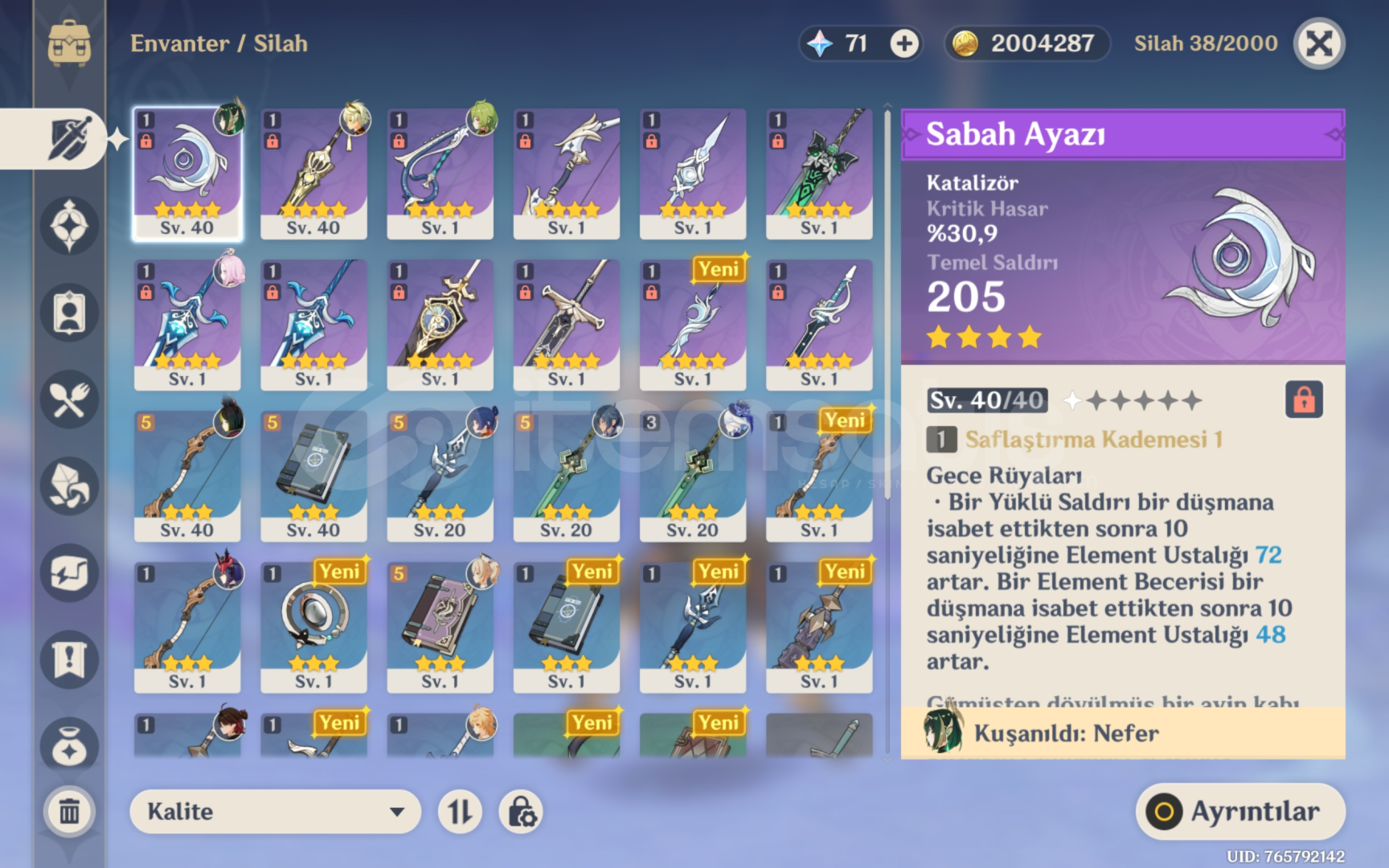 Furina nefer starter 31 pity silah