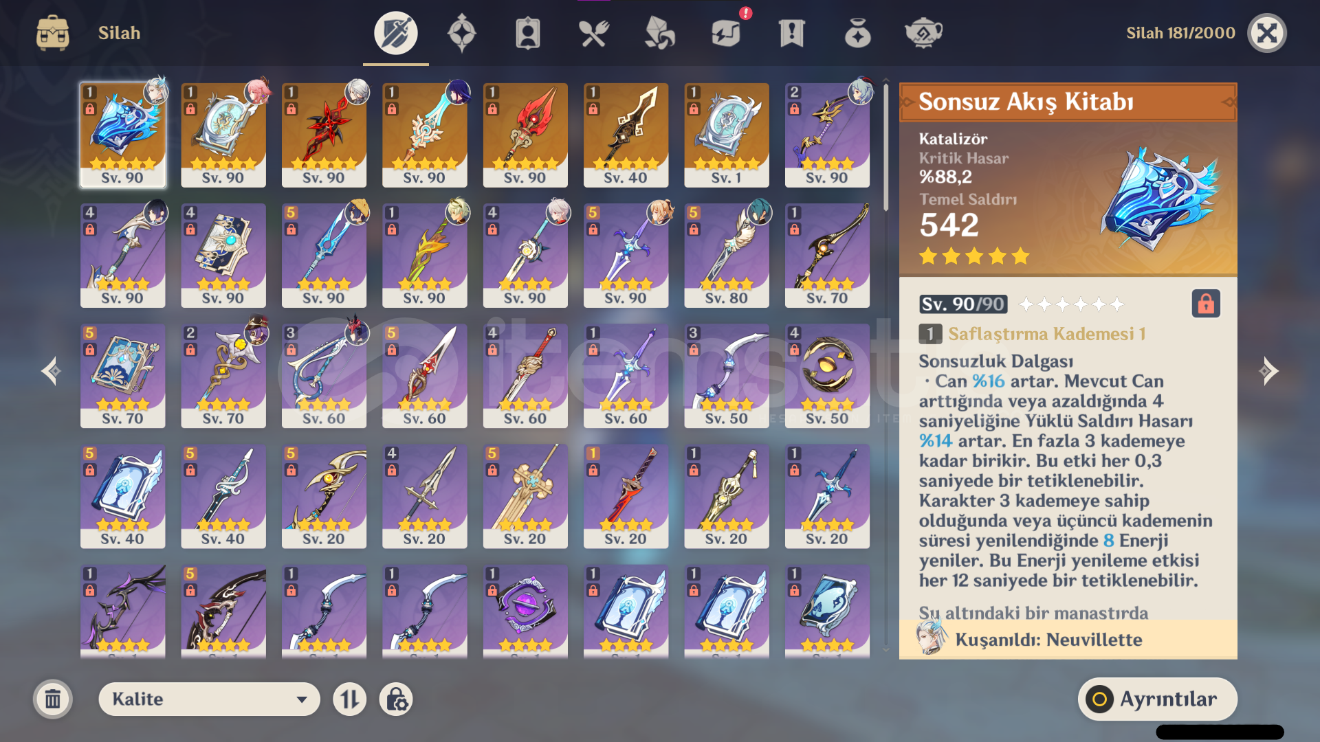 Genshin 25x5 AR 58 Lumine:15x 5* Karakter7x 5* Silah5* Takımyıldız: C2 Raiden Shogun / C1 MonaC6 4*= Chevreuse / Xiangling / Kujou Sara / Xingqui / Fischl / (diğerleri C0-C5 arası)AR 58 Lumine MC7x Yazgı Taşı46 Pity Karakter + Rate up garanti / 63 Pity StandartKostümler: Xiangling, Kaya, LisaGalaktik Işıltı ve Kader Ağının Kanatları mevcut265 tane 5* YadigarStandart 5* hariç, Jean ve diğer 5* karakterler ...