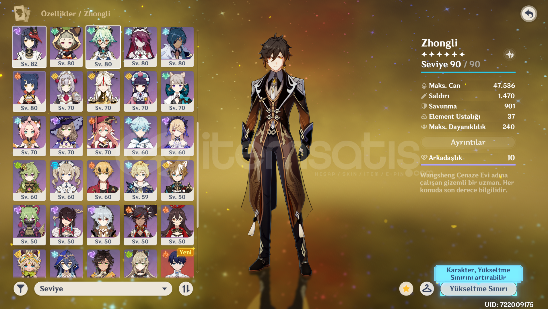Resimlerde gördügünüz gibidir çok bilgim yok bu oyunlaZhongli c1 / Raiden c1 / Kazuha c2 ve 4 yıldızlı çoğu karakter c4-c6 bannett c6Harita ilerlemesi 100/82 dir .
