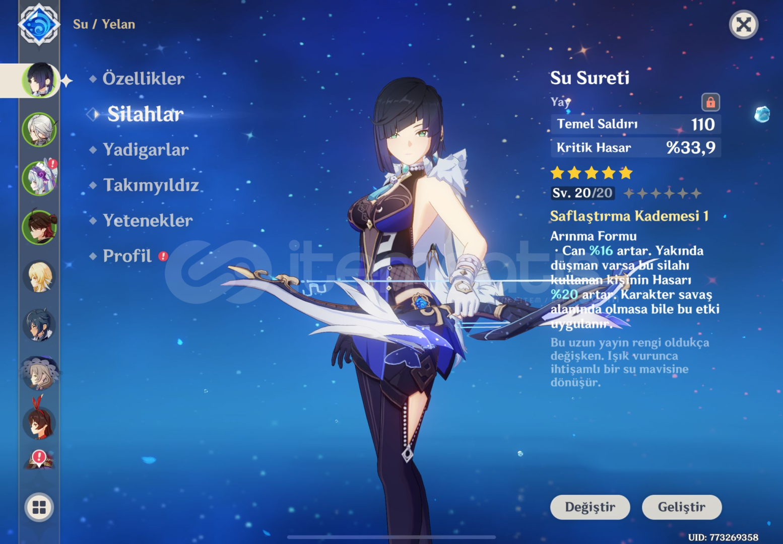 Yelan + Yelan’ın signature weapon’u (Su sureti)