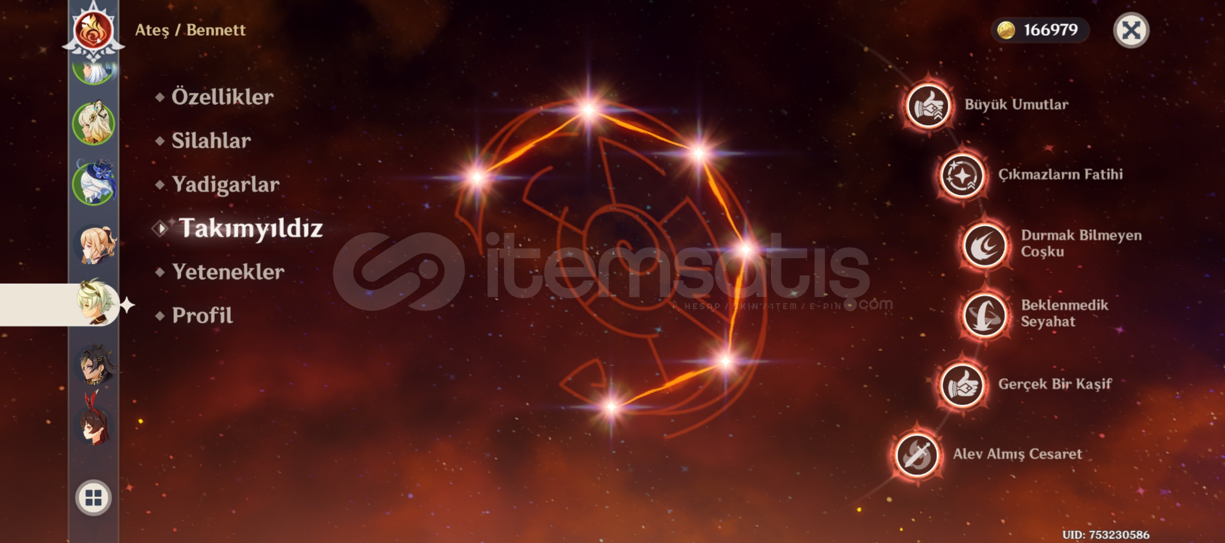 Hesap 3-4 senelik hesabı alıcak kişi istediği karakteride çıkarsın diye 73 pityde bıraktım haritada hiçbir yer 100 keşfedilmedi hesap Ar54 Tür Bitek navia 90 seviye ve imza silahi var. Hesapta gezginle beraber 10 tane 5 yıldızlı karakter vardır 2 tanede 5 yıldızlı silah vardır hesap satın alan kişinin e postasına aktarilacaktır acil para ihtiyacım olduğu için satıyorum