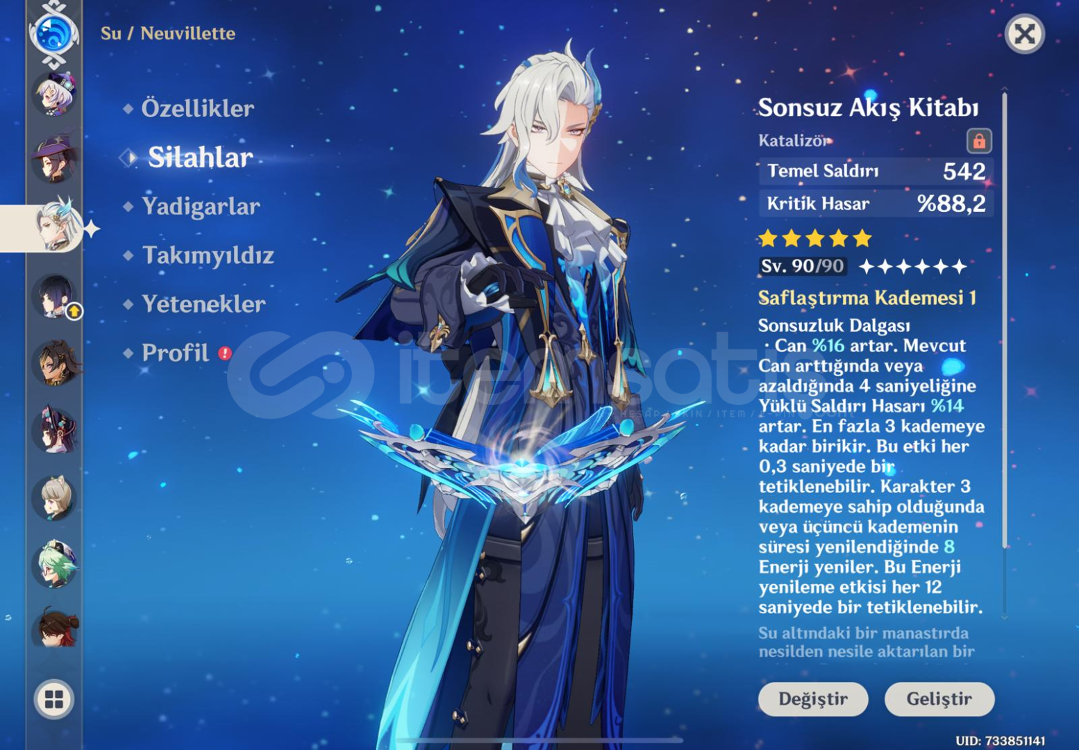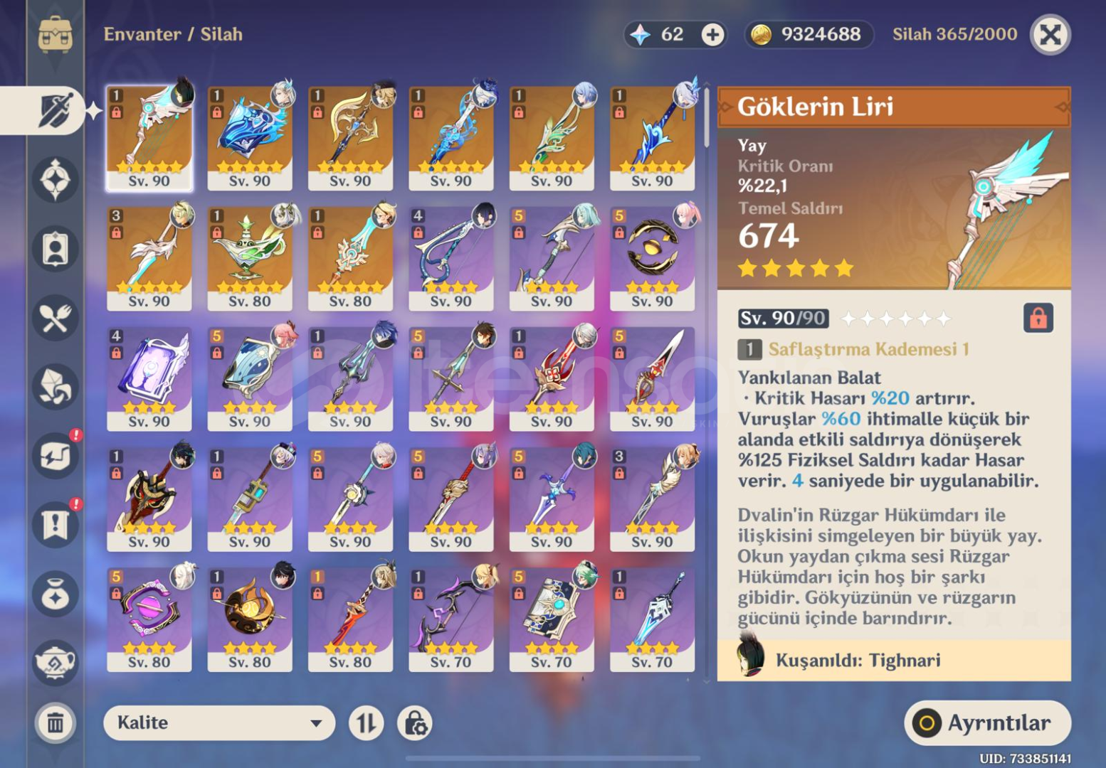 Genshin Impact EU Hesap Satılık20’den fazla 5⭐ karakter: Furina C1, Neuvillette, Navia, Nahida, Ayato, Arlecchino, Wanderer, Yae Miko, Kazuha, Zhongli, Kokomi, Yelan, Wriothesley ve daha fazlasıKarakterlerin çoğu BIS (en iyi silah & artefaktlarla) hazırC6 Faruzan, Bennett, Xingqiu, Chevreuse, Layla gibi meta 4⭐ destekler full konsSilahlar: Skyward Harp R1, Skyward Spine R1, Aquila Favonia R3, Light of Foliar Incision R1Battle Pass silahları...