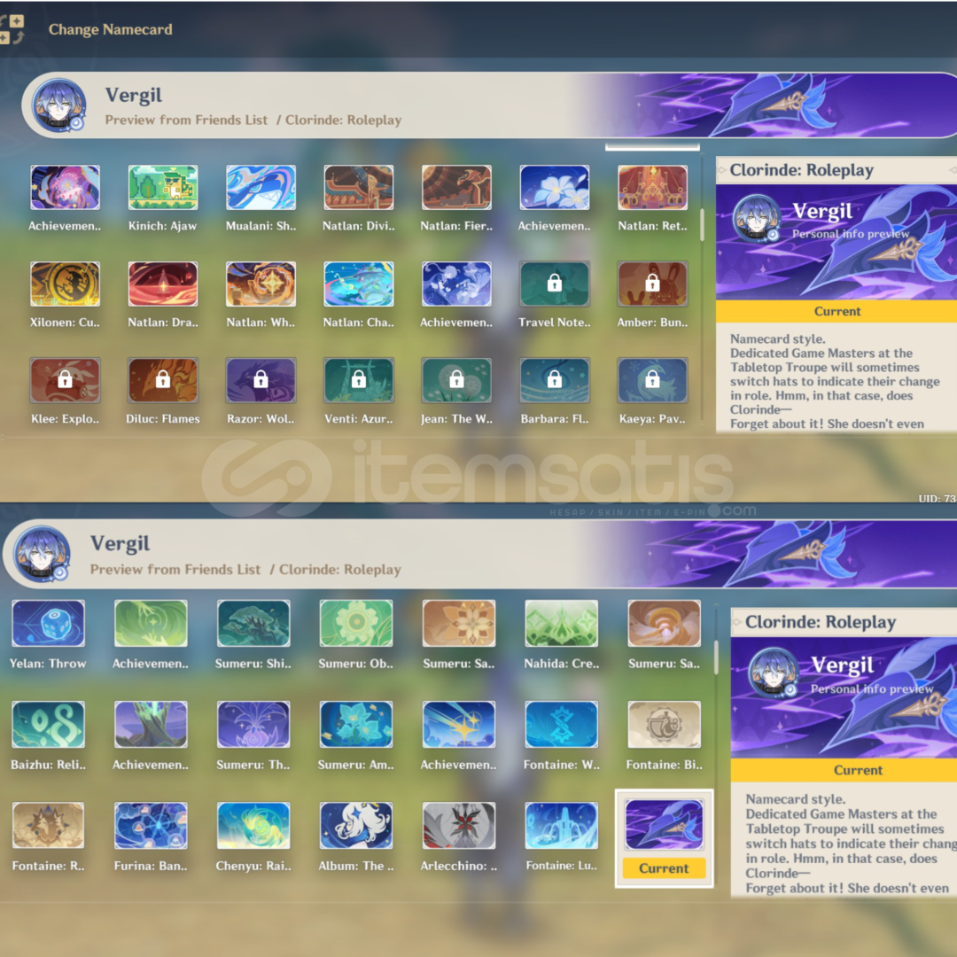 Baizhu C1Mualani C1 + IMZA SILAHIRaiden C0 + IMZA SILAHIYelan C0 + IMZA SILAHIKinich C0+ IMZA SILAHIClorinde C1 + IMZA SILAHIChasca C0Mavuika C0Zhongli C0Nahida C0Furina C0Sigewinne C0Xilonen C0Kazuha C0Lauma C0Flins C0Arlecchino C0Dehya C2Diluc C1Qiqi C1Mona C1Jean C0Mizuki C0Oyundaki haritaların hepsi 100%sadece 1 tane quest görevi varkarakter görevleri bitmiştir sadece hangout görevleri vardırYarı 4 yoldızlı karakterler support olarak build tek (if...