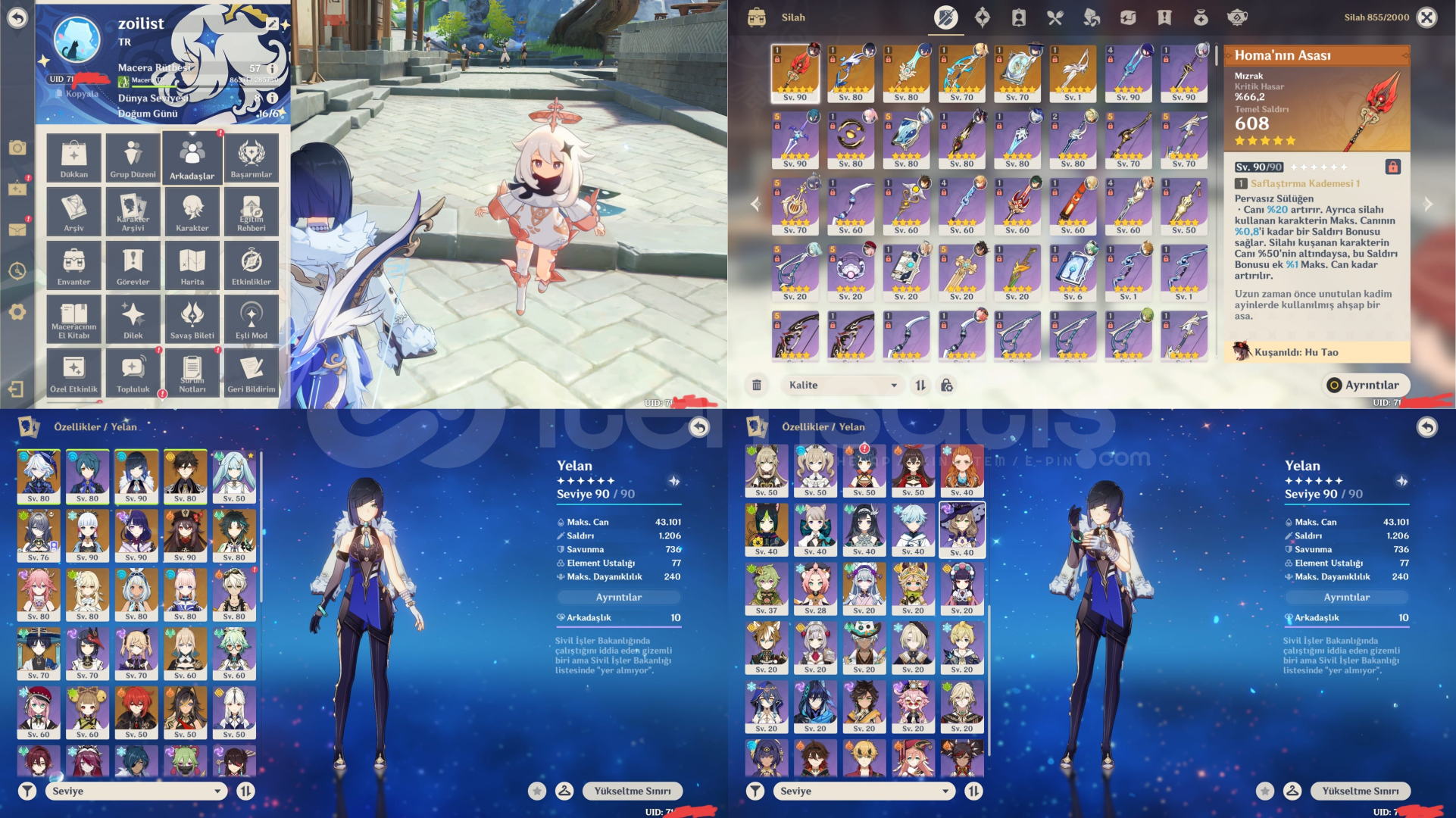 Genshin ar57:Furina C0Xingque C5Yelan C0Zhongli C0Layla C1Lauma C0Ayaka C0Hu Tao C0Raiden Shougun C0Xiao C0Yae Miko C0Mualini C0Kokomi C0Bennet C6Avare C0Jean C0Sucrose C6Diluc C2Dehya C25*silahlar:Homanın asasıSu suretiGöklerin omurgasıSon ağıtKutsal rüzgarların kayıp duasıFavonia kartalıhsr hesap:TL 695*karakterler:castoricesparklesaberyunlijingliuruan meifu xuan E1black swanseeleDr ratiobronya E1gepardarcherlouchahysilenswelt E2himekobail...