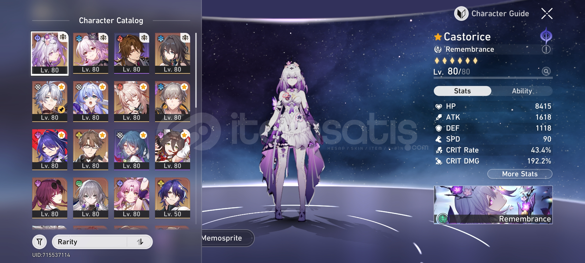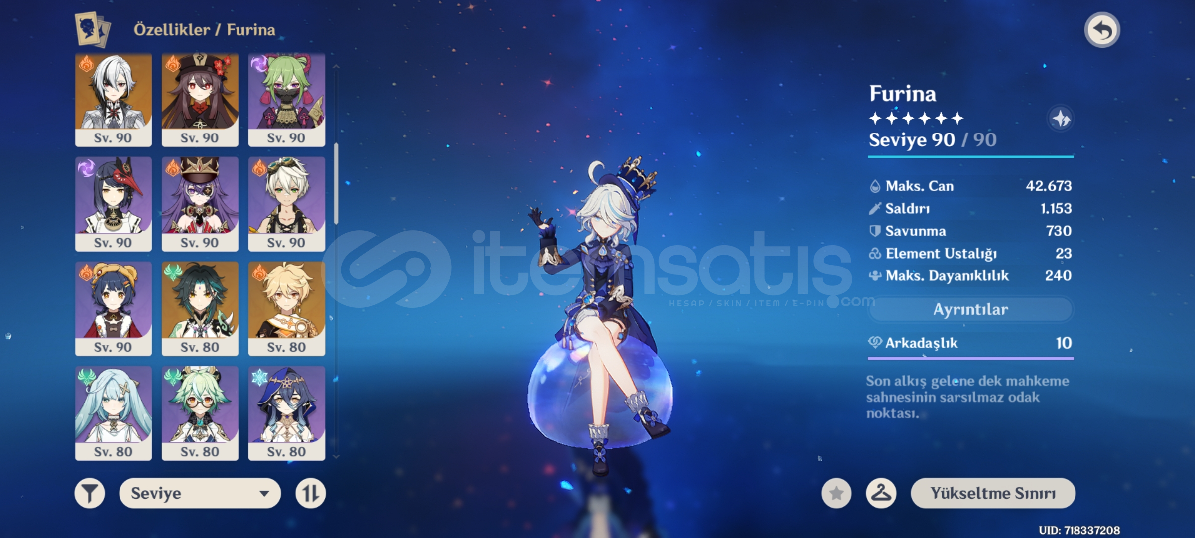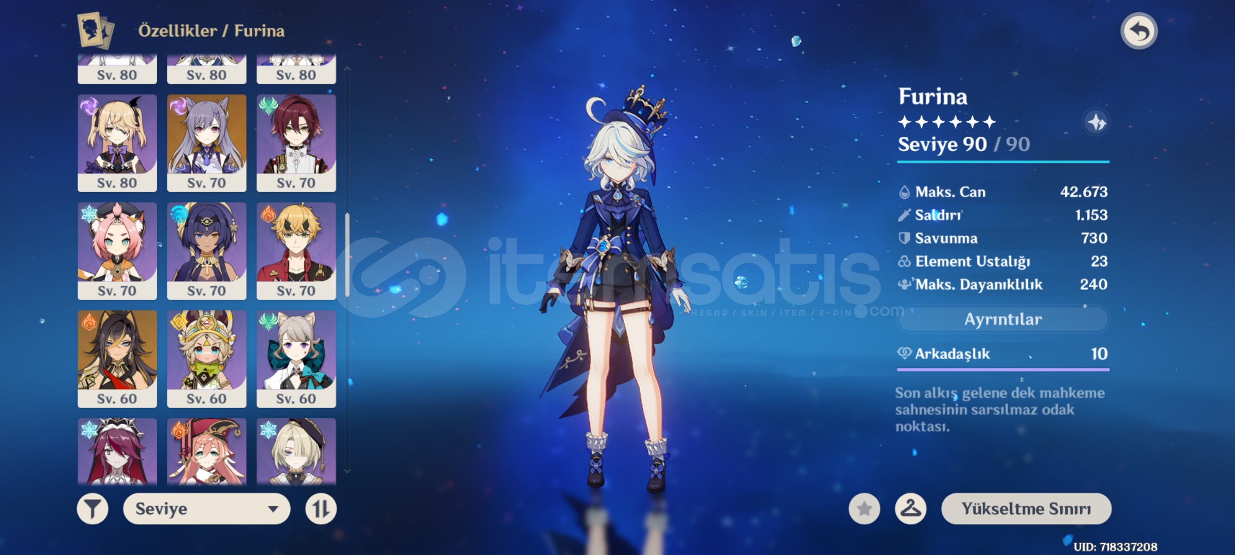 Hesap inanılmaz iyi yok yok her hesapta o kadar çok şey varki nasıl anlatabilirim bilmiyorum C3r1 raiden C3r1 neu C1 furina vs vs buidleri çoook iyi top%1 de 2 karakterim var diğerleride Max %10 a kadar kötü build yok 35 resin ar 60 welkin var hsr TL 69 sonu 1 k XP kaldı 70 olacak E1 FU XUAN E1 castorice+Bis e1phainon E1 acheron+1 jiaoqui vs vs ve fazlaca 5* lightcone var zzz de 2 3 tan E5* vardı tam hatırlamıyorum wuwada C1 jinshi artı silahı phrolova artı silahı ve çook daha fazlası var hepsini tek 1 maile sığdırdım mail devri yapacağız fiyatı bunlara göre düşünürseniz sevinirim hesapların açıldığı ilk mail ile verilecektir ayrıca rate up genshinde Pity kasıyorum endgame contentlerde sorun yaşamıyorum 12-3 rahat yapıyor