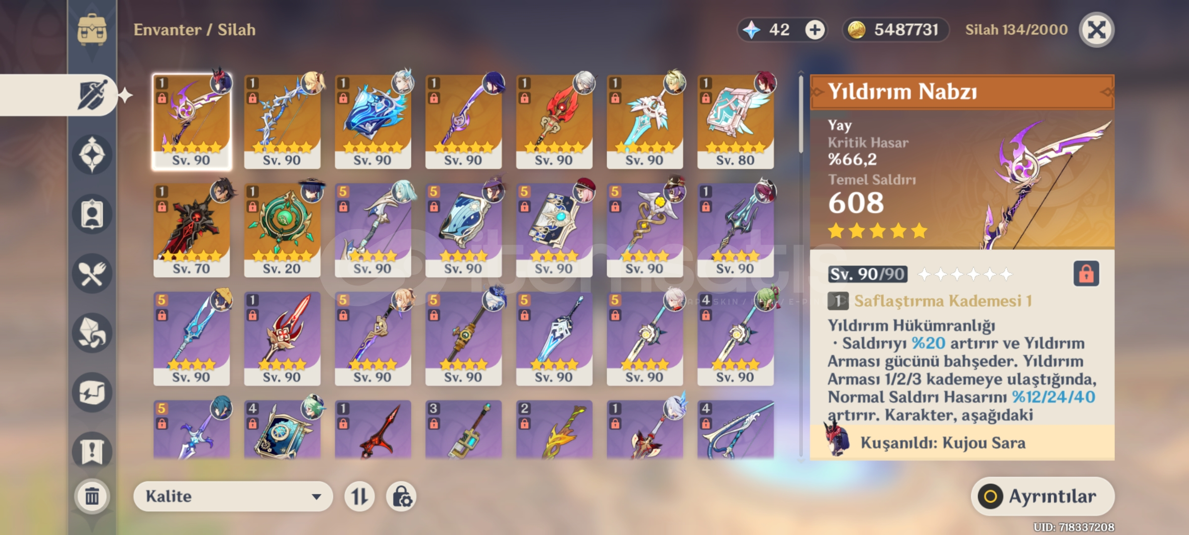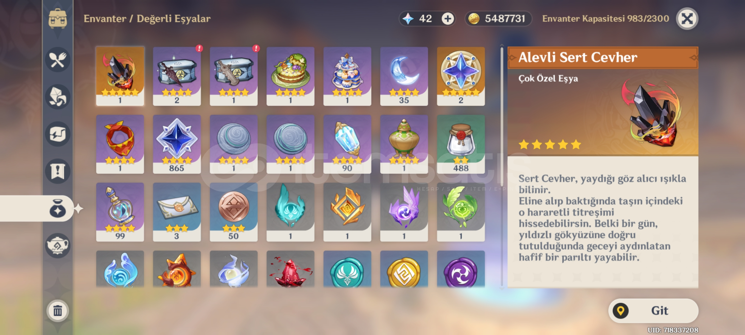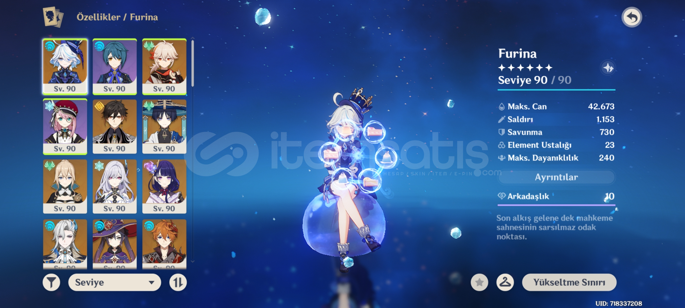 Hesap inanılmaz iyi yok yok her hesapta o kadar çok şey varki nasıl anlatabilirim bilmiyorum C3r1 raiden C3r1 neu C1 furina vs vs buidleri çoook iyi top%1 de 2 karakterim var diğerleride Max %10 a kadar kötü build yok 35 resin ar 60 welkin var hsr TL 69 sonu 1 k XP kaldı 70 olacak E1 FU XUAN E1 castorice+Bis e1phainon E1 acheron+1 jiaoqui vs vs ve fazlaca 5* lightcone var zzz de 2 3 tan E5* vardı tam hatırlamıyorum wuwada C1 jinshi artı silahı phrolova artı silahı ve çook daha fazlası var hepsini tek 1 maile sığdırdım mail devri yapacağız fiyatı bunlara göre düşünürseniz sevinirim hesapların açıldığı ilk mail ile verilecektir ayrıca rate up genshinde Pity kasıyorum endgame contentlerde sorun yaşamıyorum 12-3 rahat yapıyor