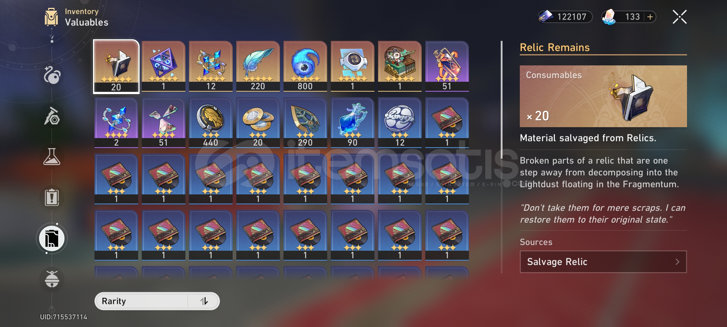 Hesap inanılmaz iyi yok yok her hesapta o kadar çok şey varki nasıl anlatabilirim bilmiyorum C3r1 raiden C3r1 neu C1 furina vs vs buidleri çoook iyi top%1 de 2 karakterim var diğerleride Max %10 a kadar kötü build yok 35 resin ar 60 welkin var hsr TL 69 sonu 1 k XP kaldı 70 olacak E1 FU XUAN E1 castorice+Bis e1phainon E1 acheron+1 jiaoqui vs vs ve fazlaca 5* lightcone var zzz de 2 3 tan E5* vardı tam hatırlamıyorum wuwada C1 jinshi ...