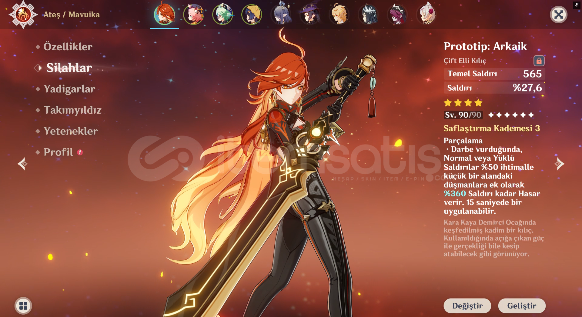 -Mavuika 90 Level (Silahı Prototip Arkaik (90lvl) ) yetenekleri Hepsi 6 level