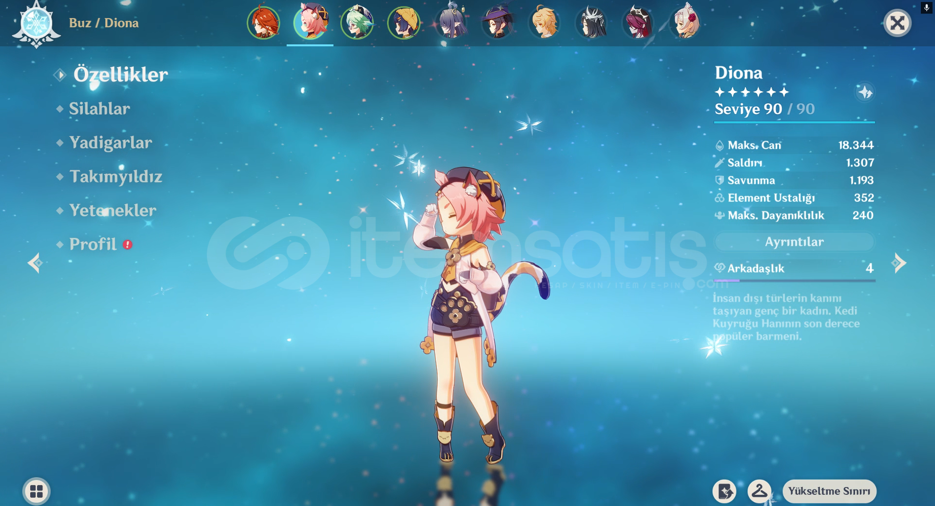 -Diona 90 Level (Silahı Favonius Savaş Yayı R2(90lvl) ) Yetenkleri hepsi 6 Level Ultisi 7 Level