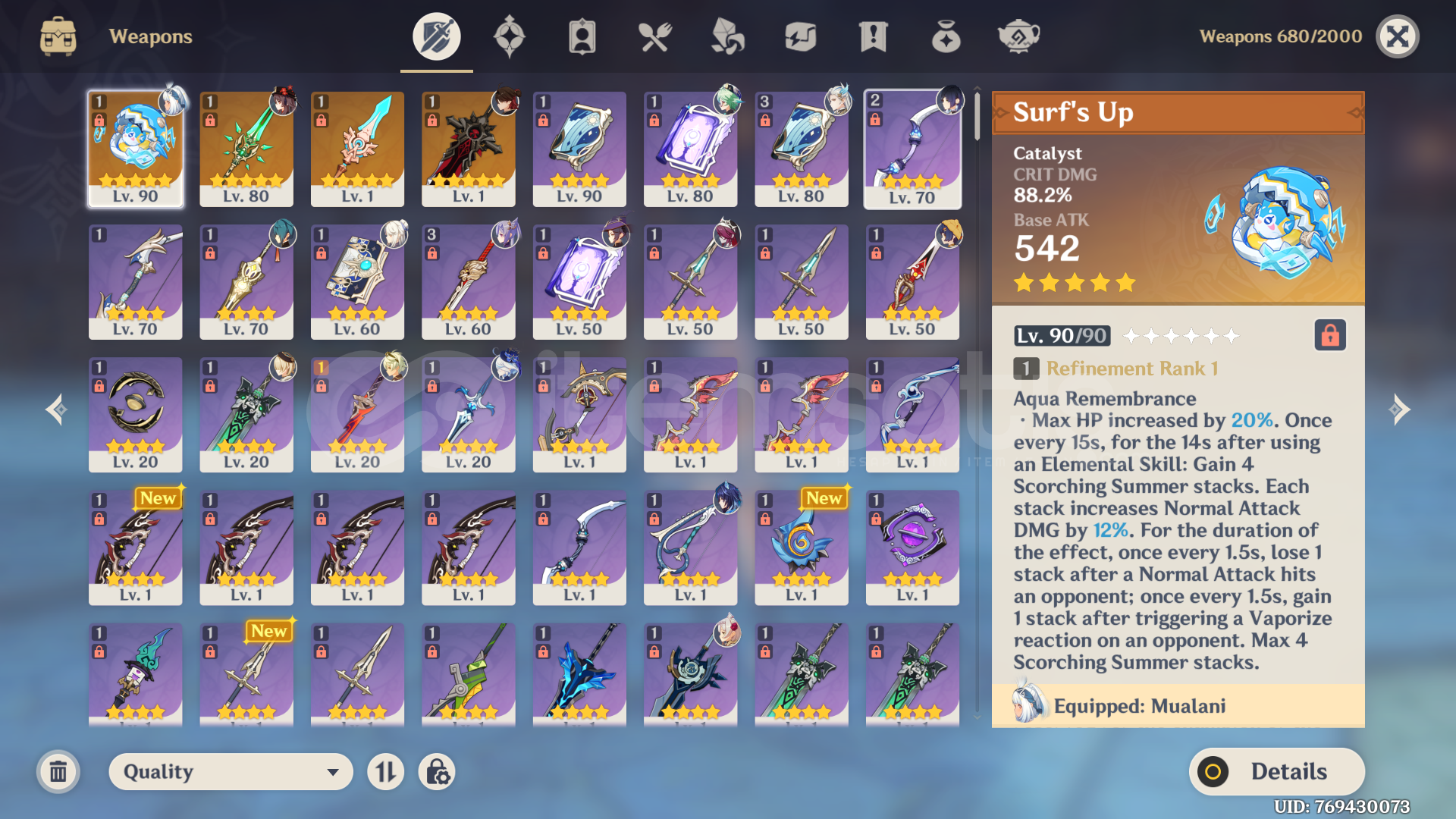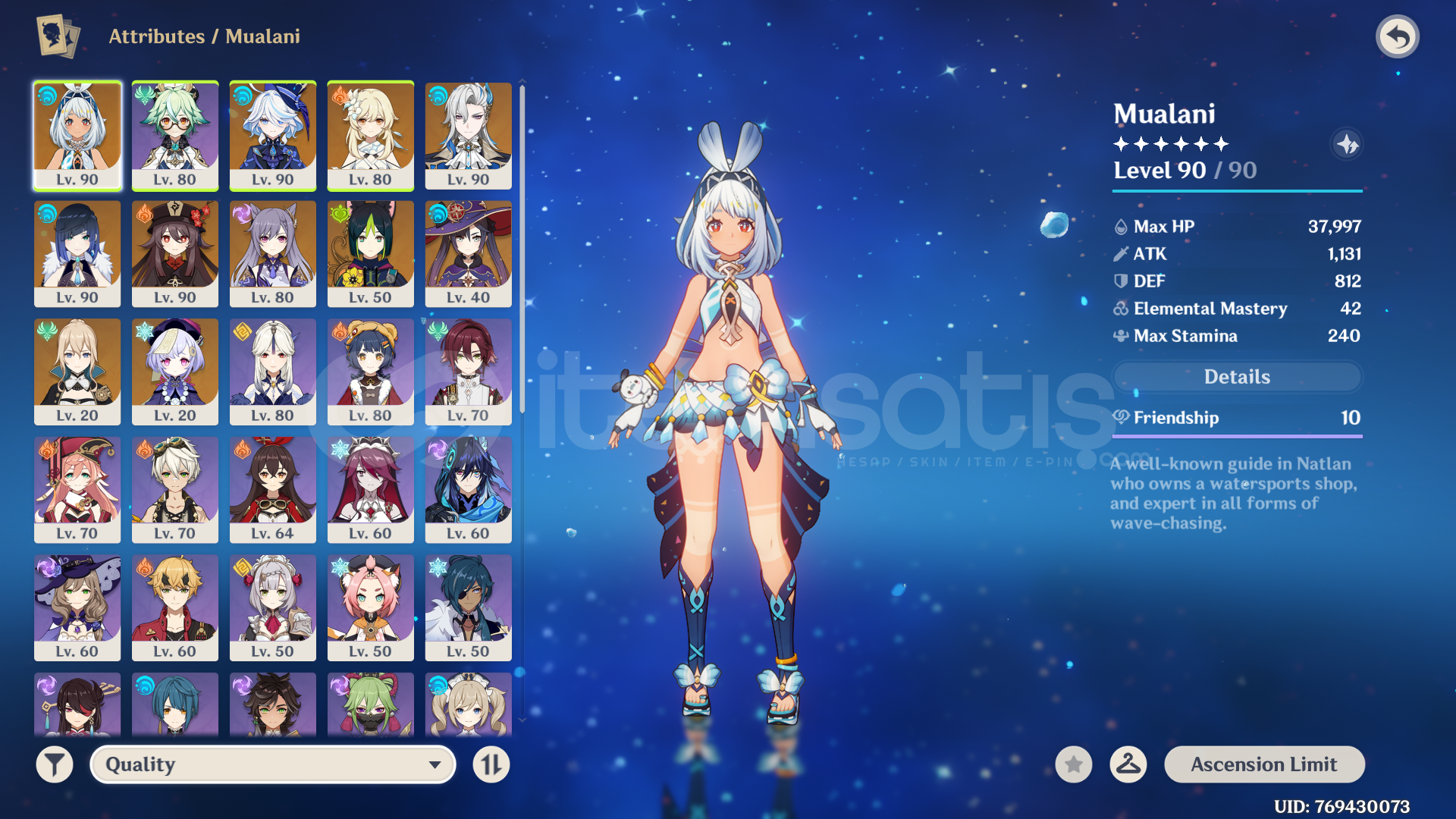 Mualani + biss Furina, Neuv,Yelan,Hu Tao RATEUP