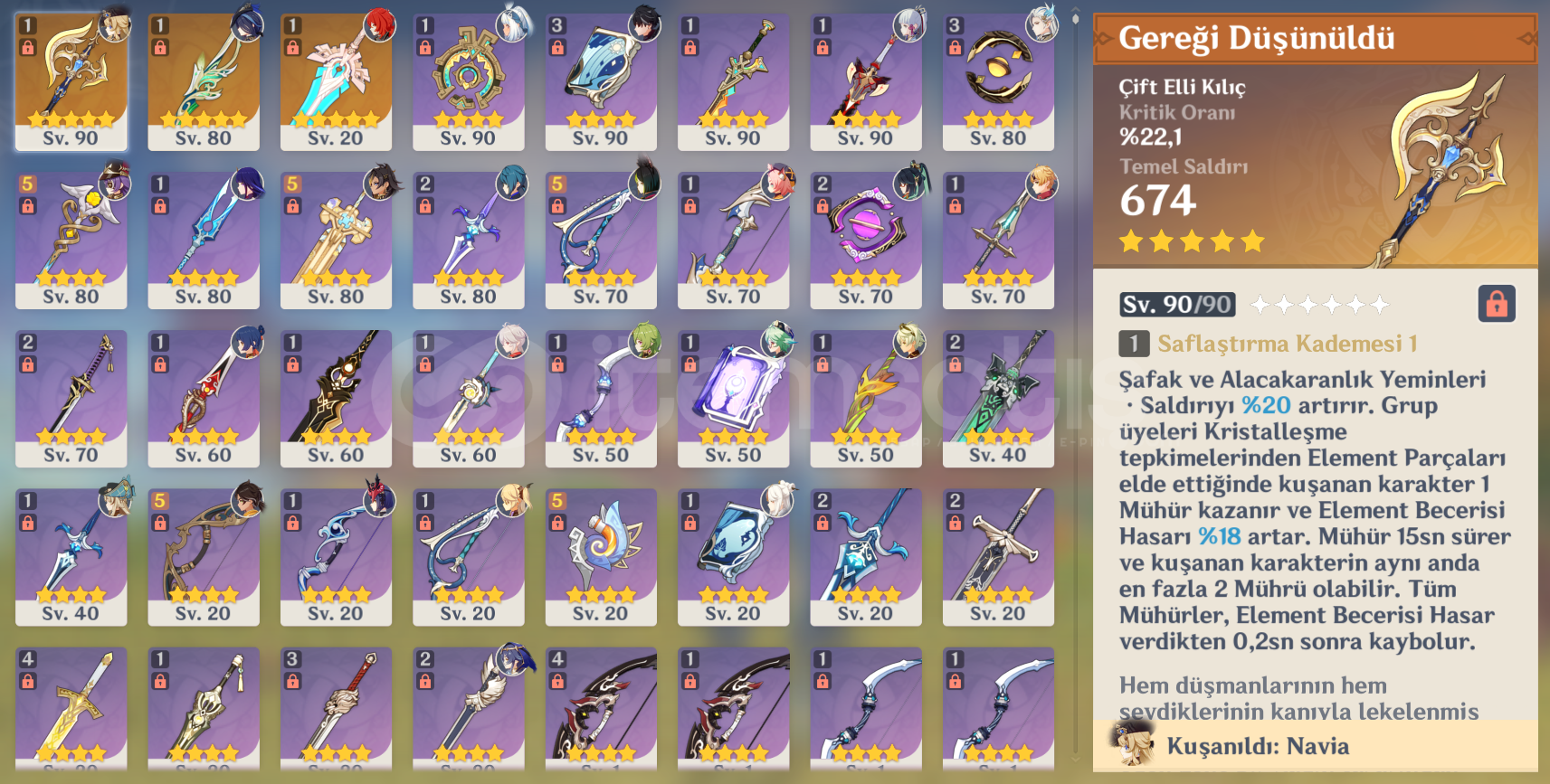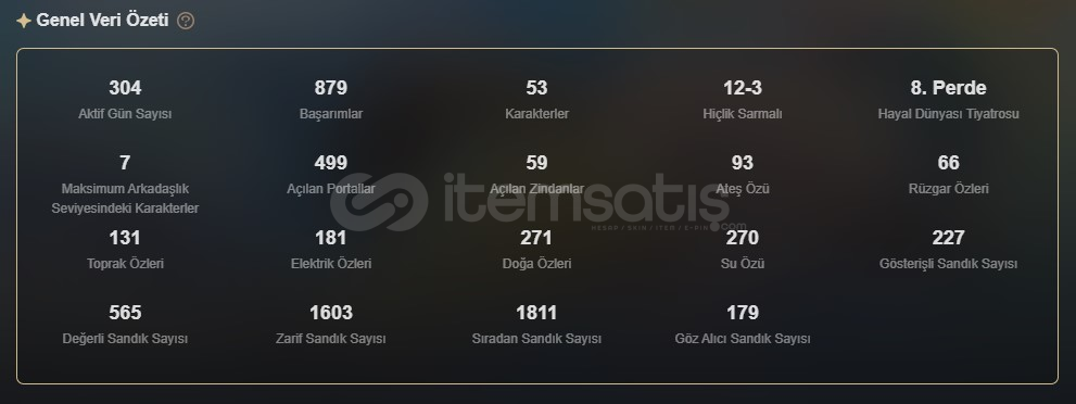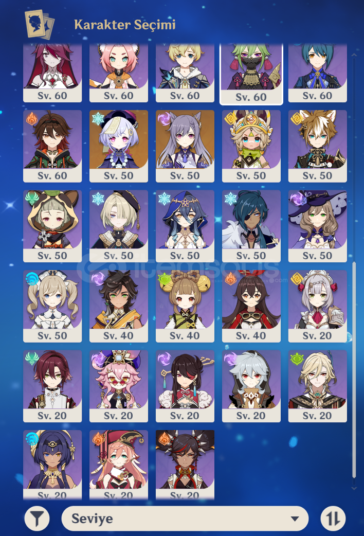 Hesabın içinde endgame content için gereken en iyi dps karakterleri var.Hesap Maceracı Seviyesi 57.Haritadaki bir çok yer 100% lenmiş olmaktadır.3 ADET beş yıldız silah var.14 adet beş yıldız karakter var.Fontaine + Monstadt