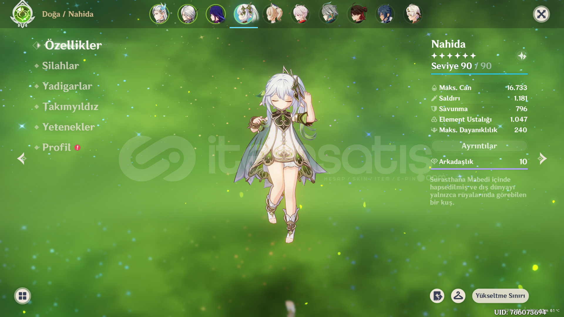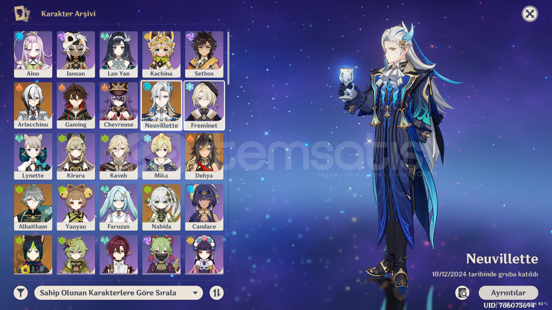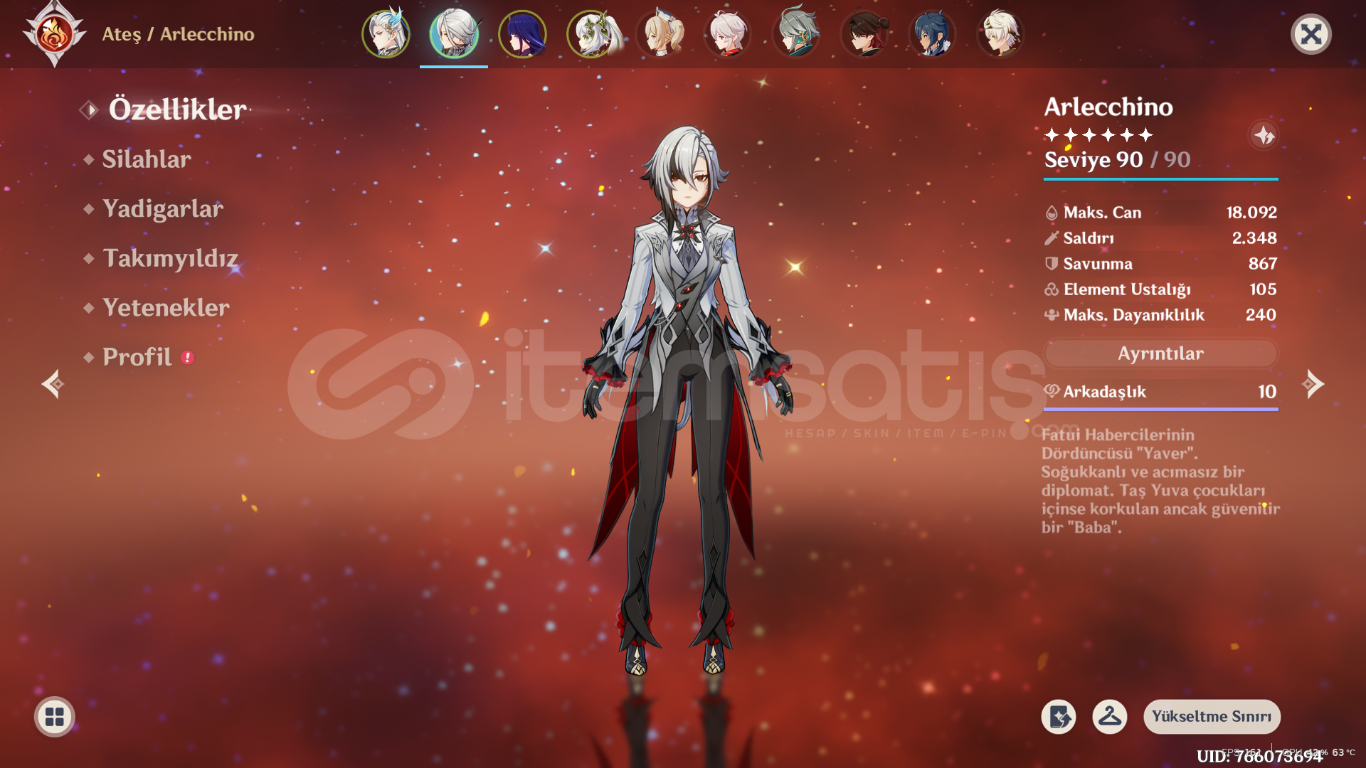 Her şeyi değişebilir, tamamen bana ait olan yedek hesabımı satıyorum.Bu hesapta:Hepsi tam seviye ve game8'e göre mükemmel olarak ayarlanmış Arlecchino & Neuvilette & Nahida & Kazuha & Furina & Shogun & Alhaitham & Tighnari & Jean & Dehya ve birçok C6 4 yıldızlı karakter bulunuyor.Fotoğraftaki gibi birçok 5 yıldızlı silah mevcut.Lan yan, gaming gibi birçok 4 yıldızlı karakter C...