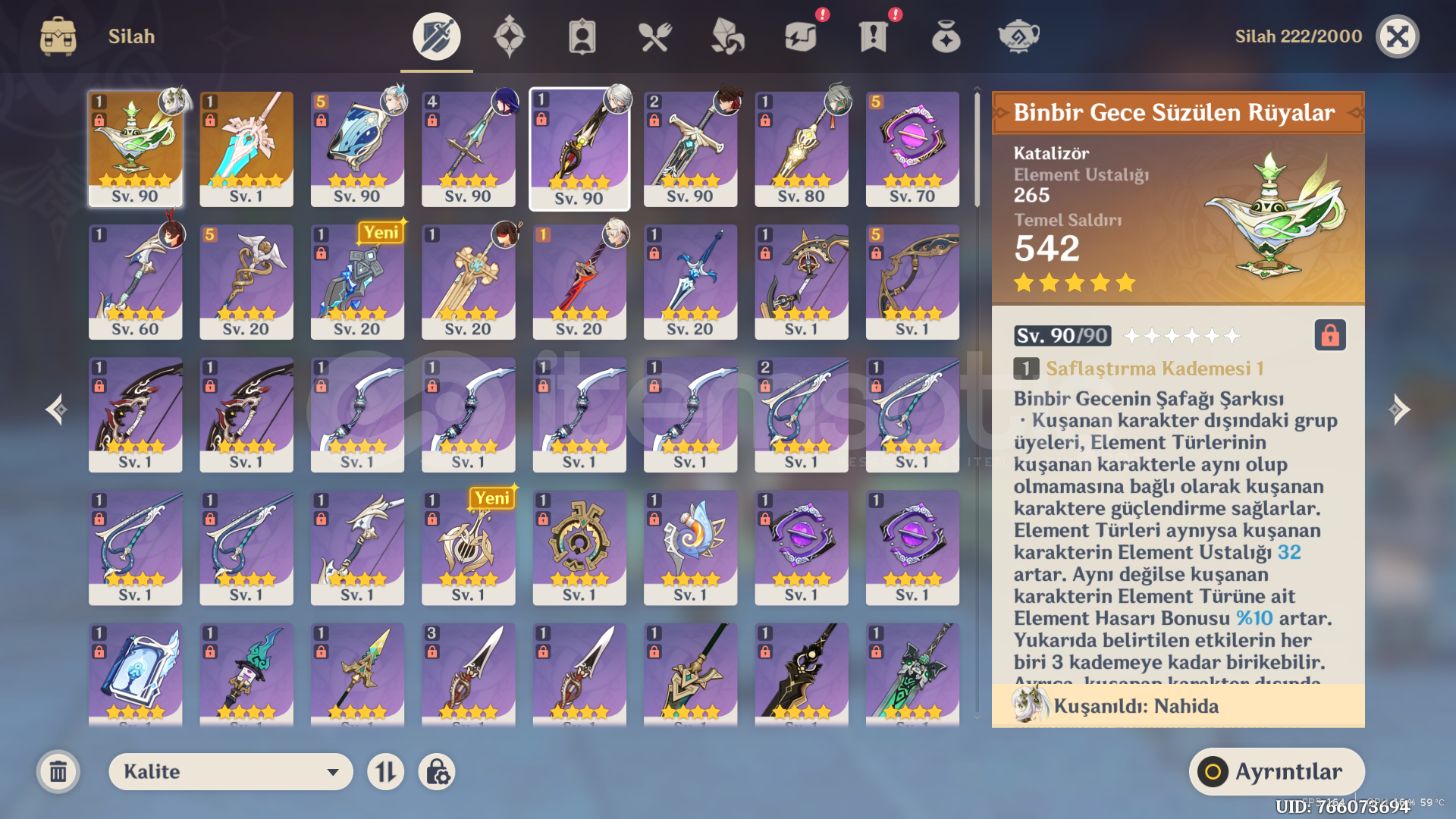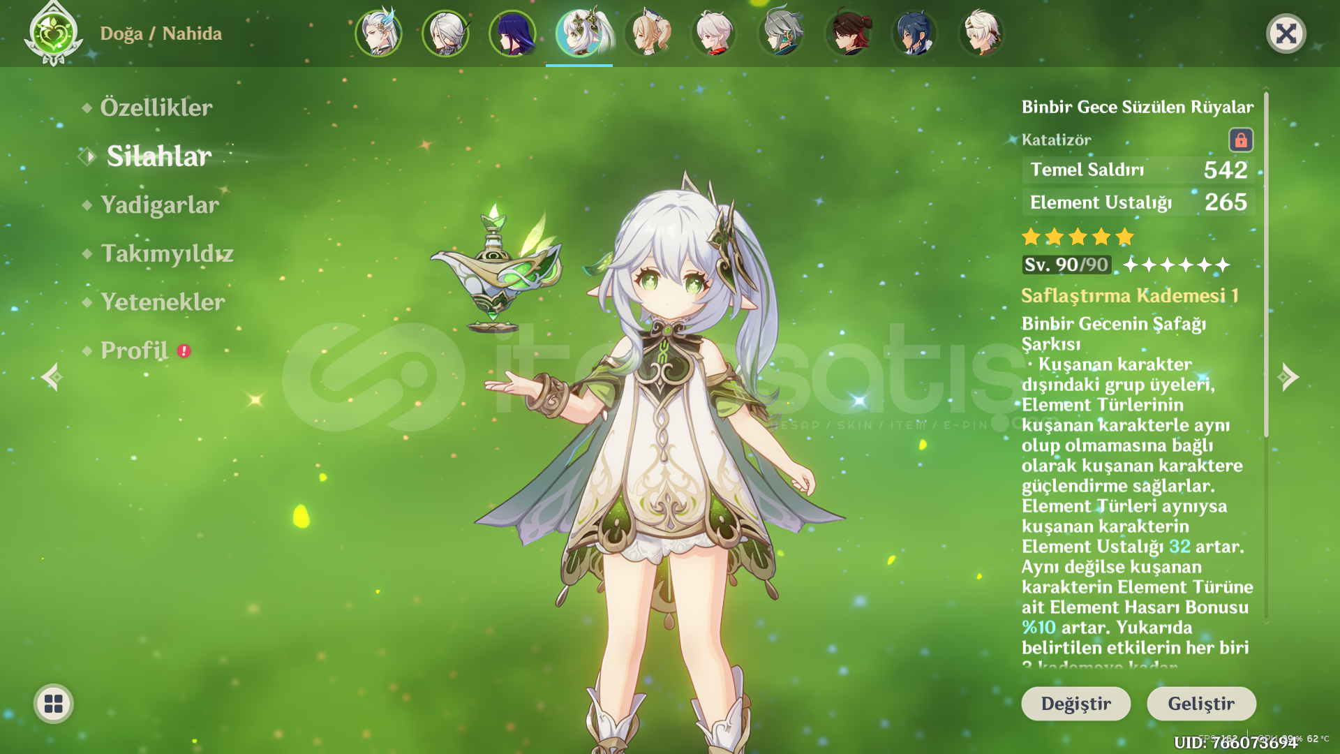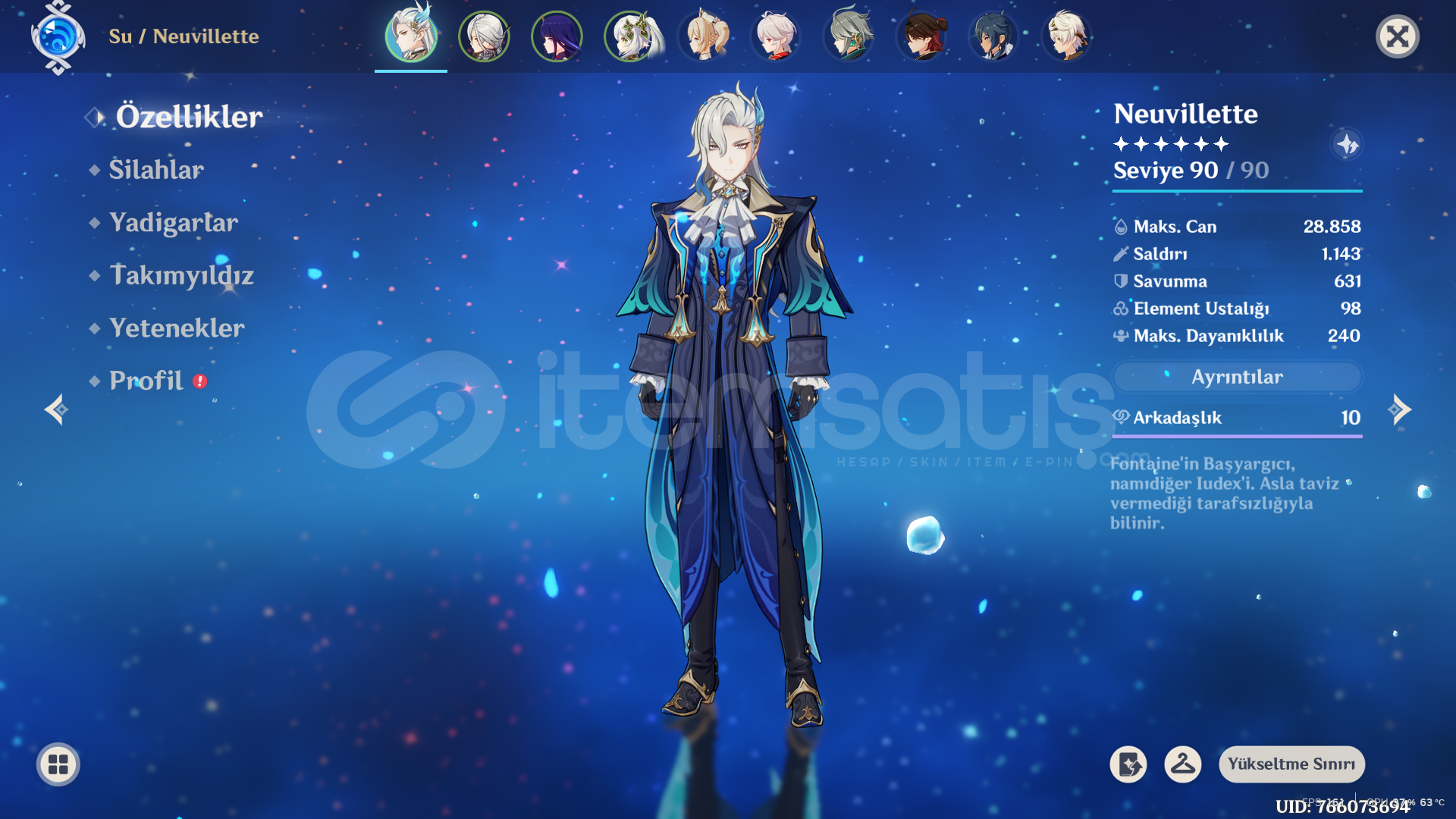 Her şeyi değişebilir, tamamen bana ait olan yedek hesabımı satıyorum.Bu hesapta:Hepsi tam seviye ve game8'e göre mükemmel olarak ayarlanmış Arlecchino & Neuvilette & Nahida & Kazuha & Furina & Shogun & Alhaitham & Tighnari & Jean & Dehya ve birçok C6 4 yıldızlı karakter bulunuyor.Fotoğraftaki gibi birçok 5 yıldızlı silah mevcut.Lan yan, gaming gibi birçok 4 yıldızlı karakter C...