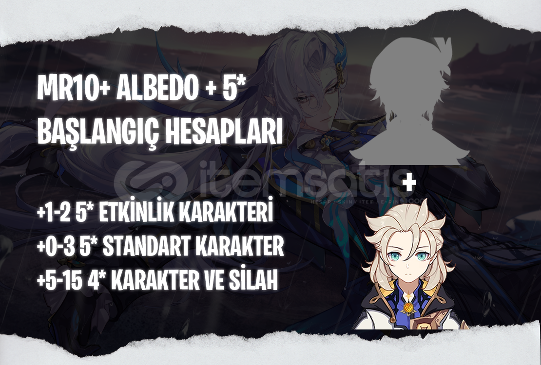Bu ilanı satın aldığınızda MR10+ seviyesinde içerişinde Albedo + 1-2 adet rastgele 5* etkinlik karakteri bulunan bir hesap tarafınıza iletilecektir.