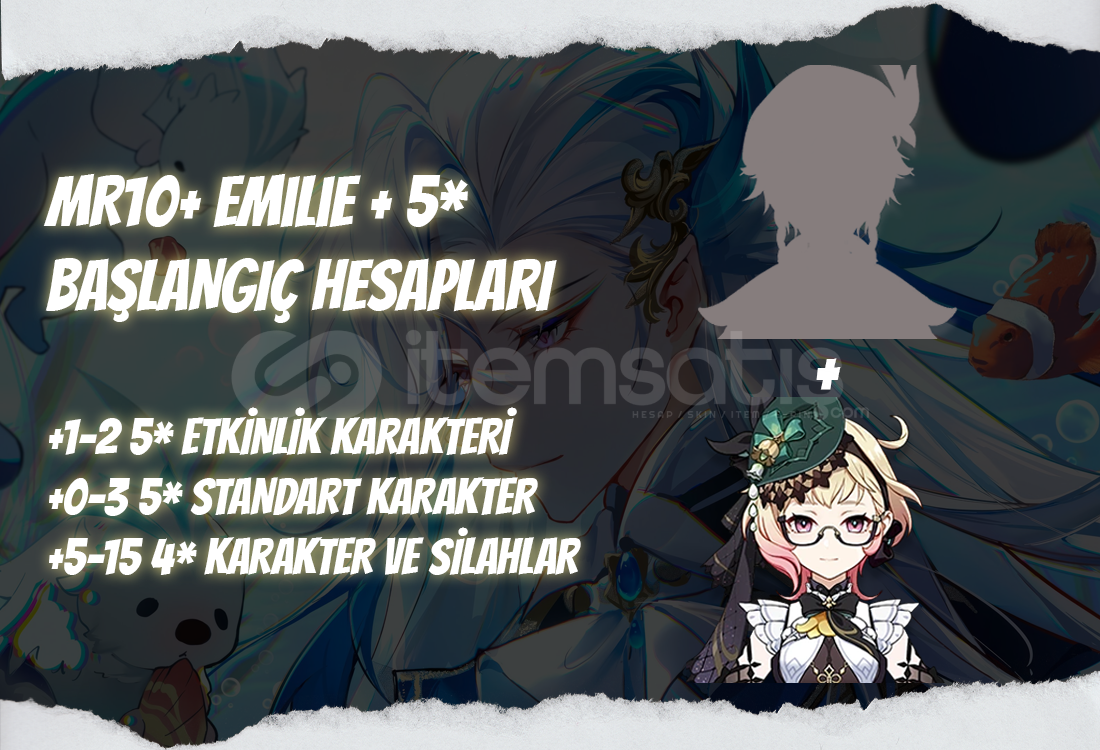 Bu ilanı satın aldığınızda MR10+ seviyesinde içerişinde Emilie + 1-2 adet rastgele 5* etkinlik karakteri bulunan bir hesap tarafınıza iletilecektir.