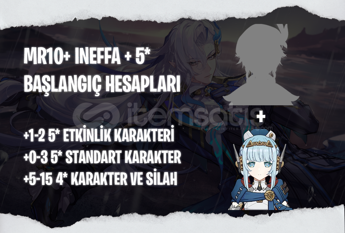 Bu ilanı satın aldığınızda MR10+ seviyesinde içerişinde Ineffa + 1-2 adet rastgele 5* etkinlik karakteri bulunan bir hesap tarafınıza iletilecektir.Hesapların içerişinde 0-3 adet 5* standart karakter içerebilir.Hesapların içerişinde bir miktar köken taşı bulunabilir.Tüm hesaplarımız garantilidir ve alım sonrası kullan...