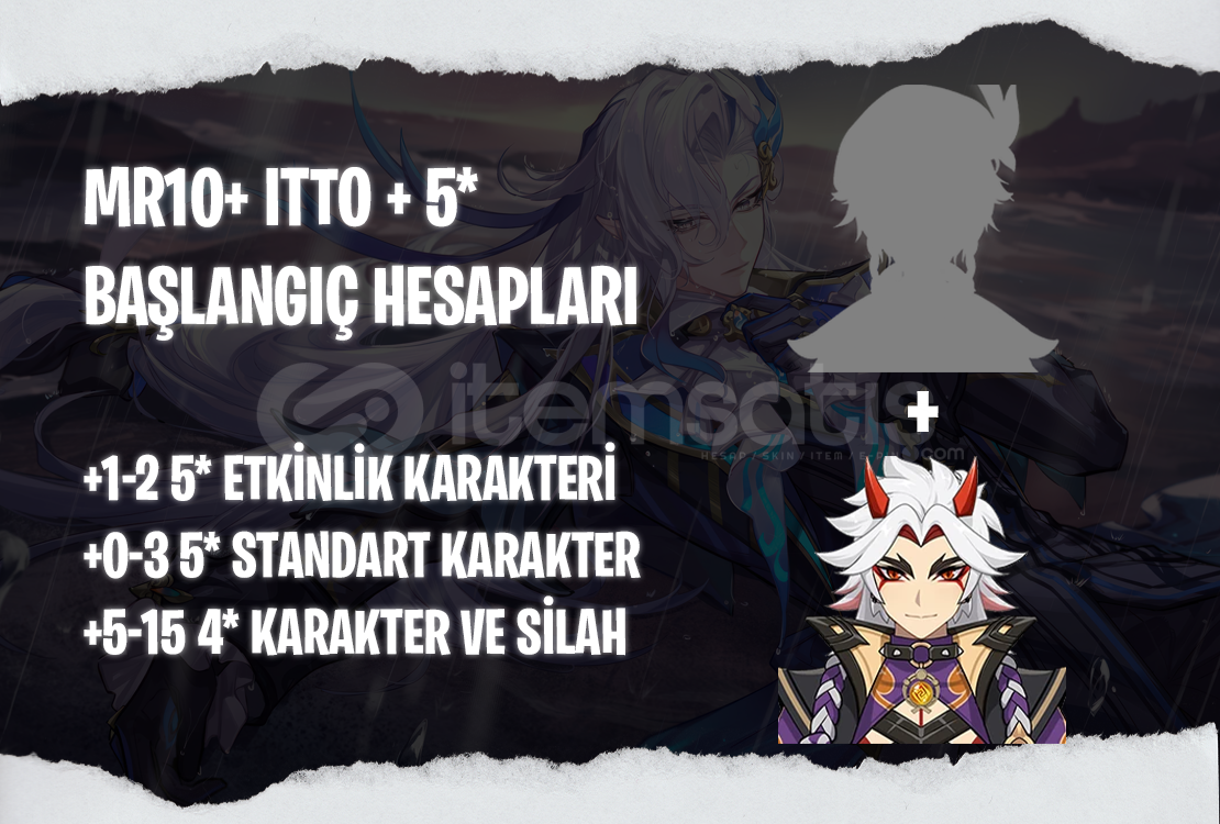 Bu ilanı satın aldığınızda MR10+ seviyesinde içerişinde Arataki Itto + 1-2 adet rastgele 5* etkinlik karakteri bulunan bir hesap tarafınıza iletilecektir.