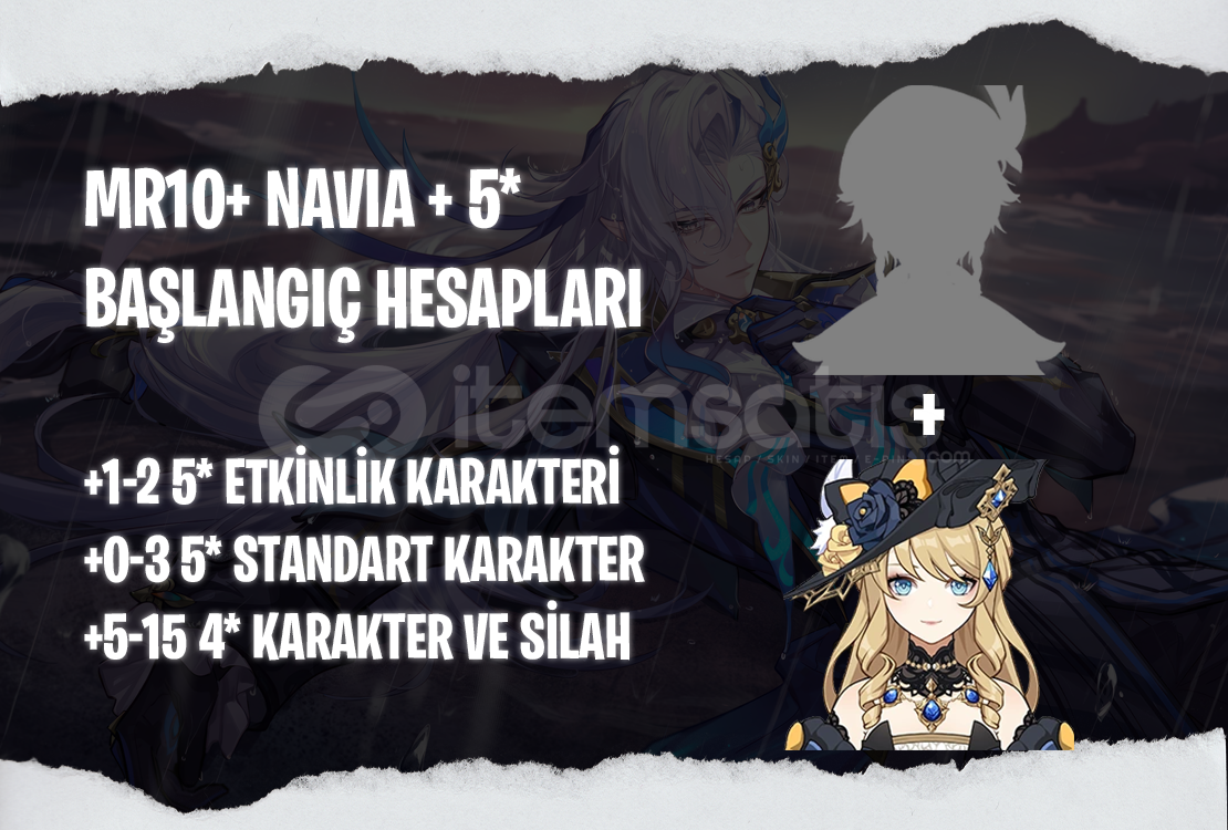 Bu ilanı satın aldığınızda MR10+ seviyesinde içerişinde Navia + 1-2 adet rastgele 5* etkinlik karakteri bulunan bir hesap tarafınıza iletilecektir.Hesapların içerişinde 0-3 adet 5* standart karakter içerebilir.Hesapların içerişinde bir miktar köken taşı bulunabilir.Tüm hesaplarımız garantilidir ve alım sonrası kullan...