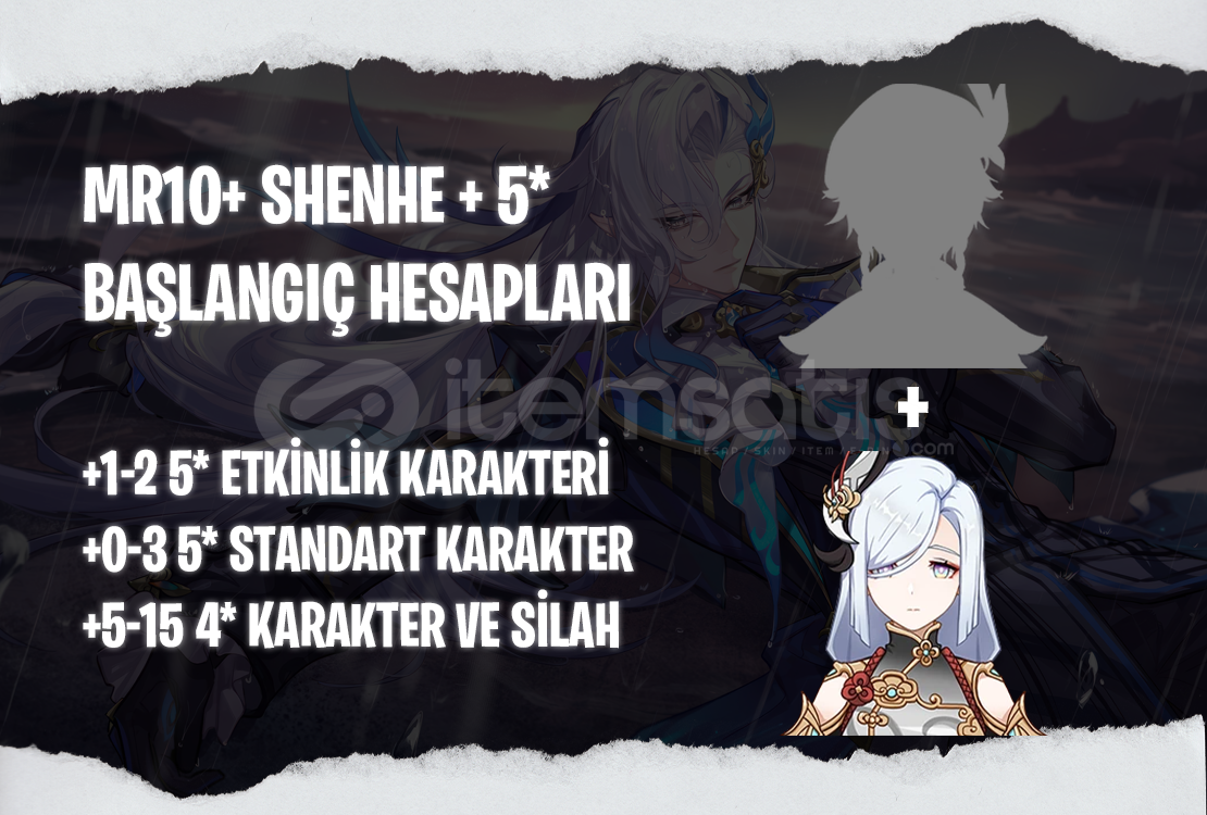 Bu ilanı satın aldığınızda MR10+ seviyesinde içerişinde Shenhe + 1-2 adet rastgele 5* etkinlik karakteri bulunan bir hesap tarafınıza iletilecektir.