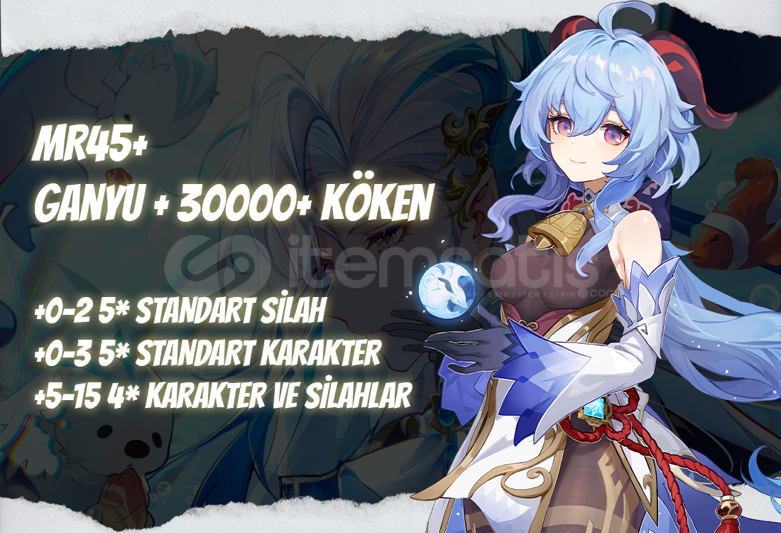Bu ilanı satın aldığınızda MR50+ seviyesinde içerişinde Ganyu ve ilanda belirtildiği kadar Köken taşı bulunan bir hesap tarafınıza iletilecektir.