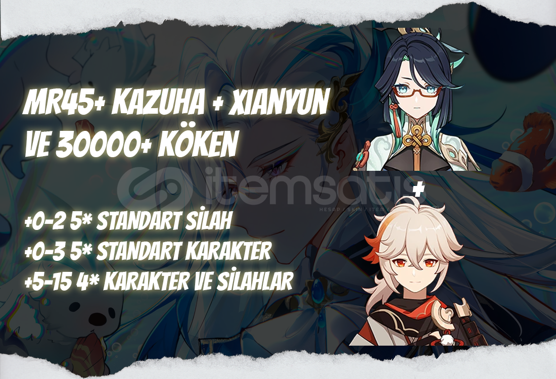 Bu ilanı satın aldığınızda MR50+ seviyesinde içerişinde Kaedehara Kazuha + Xianyun ve ilanda belirtildiği kadar Köken taşı bulunan bir hesap tarafınıza iletilecektir.