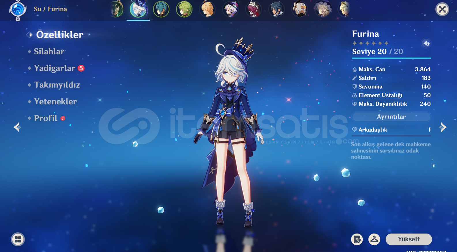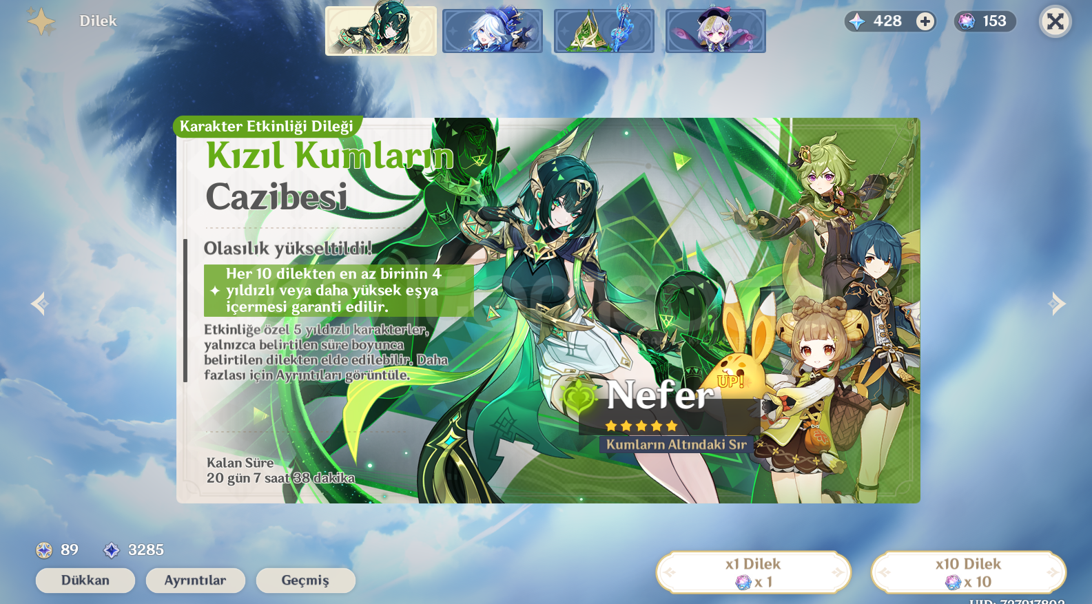 hesapta toplam 172 wish ile nefer, furina ve c1 qiqi var.
