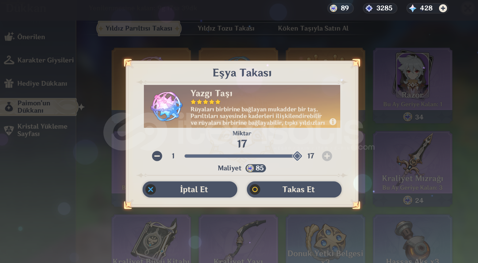 hesaptaki yıldız partıltıları ile ayrica 17 wish daha alabilirsiniz.