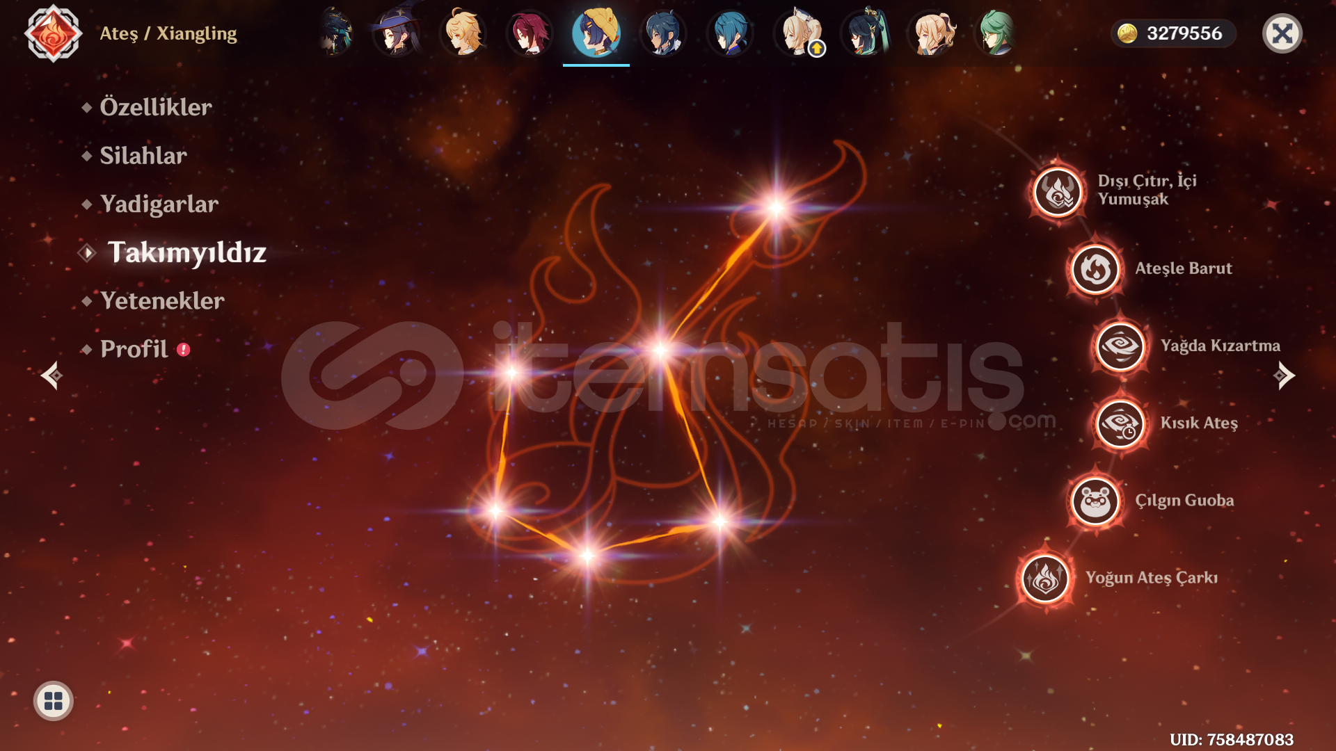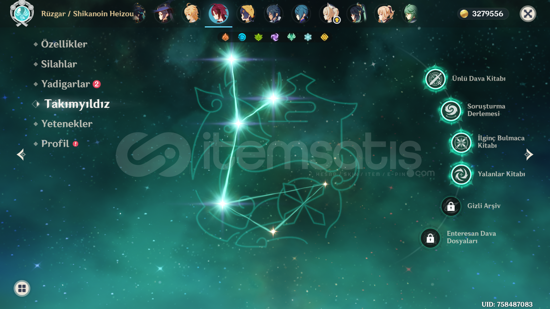 Çoğu karakter kasılıdır, çoğu 4 yıldızlı karakterde takımyıldızlar açıktır.