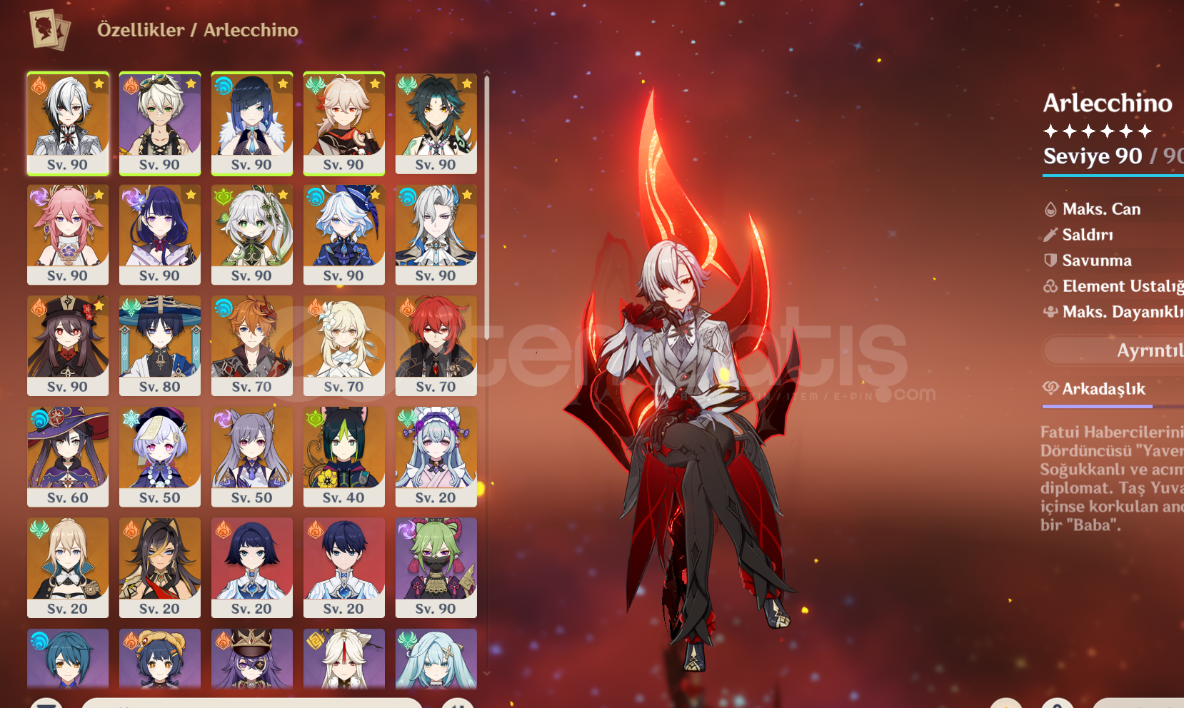 Almadan Önce Oku !!Hesap benim main hesabım oyuzden tüm oyunlar baglıYani alırken bir Genshin hesabı olarak düşünmeyin hesabın içerisinde Genshin impact , Zenless zone zero , Honkai star railbulunmaktadır bu oyunlardaki hesaplar hepsi dolu doludur Bu kadar alan Arkadaşa Hayırlı olsu ⛧ ⋆༺Genshin impact༻⋆⛧Arlechino Bennet c6 En Temel Hero lar Bunlar Yelan Kuki Shinabu c6 Kazuha Xingqiu ...
