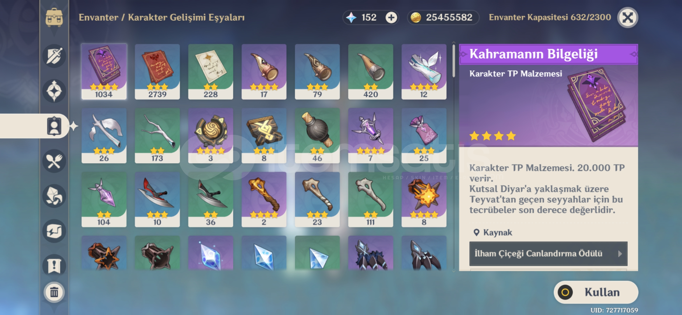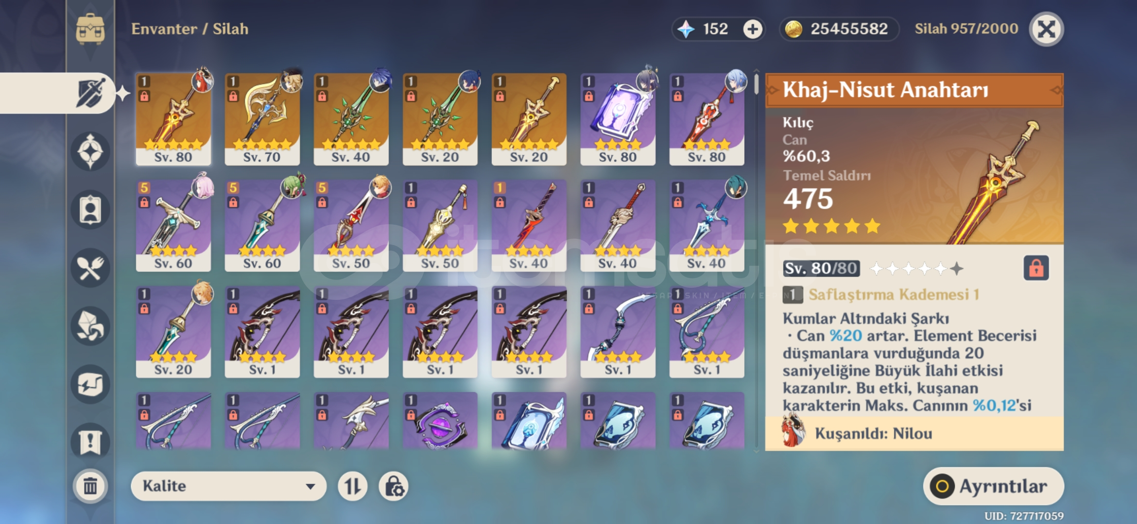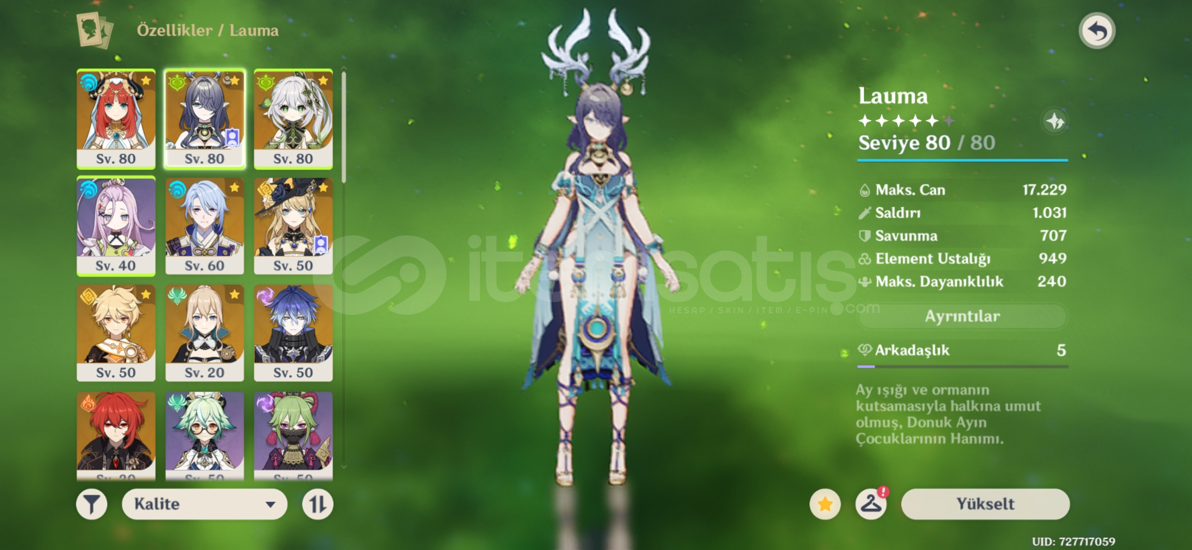 Nefer icin hazir takimLauma Nilou Biss NahidaAyrıca flins ve ezeli yeşim Mızrak 2 adetNavia Biss ve Kamistu AyatoDetaylar resimlerde mevcuttur.Pity 20 civar rate up yoktur.Hesapta welkin ve 320 Genesis Kristal var.58 kırılgan reçine mevcuttur.Harita oranları resimlerde mevcuttur.Natlan ve nor krai boştur.