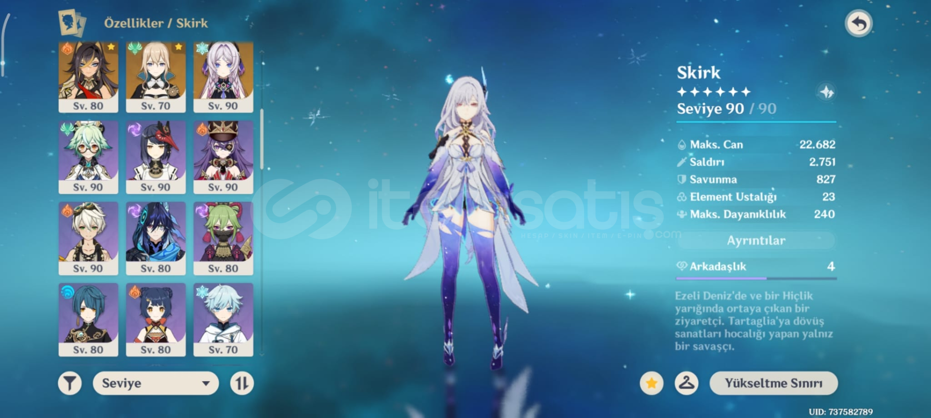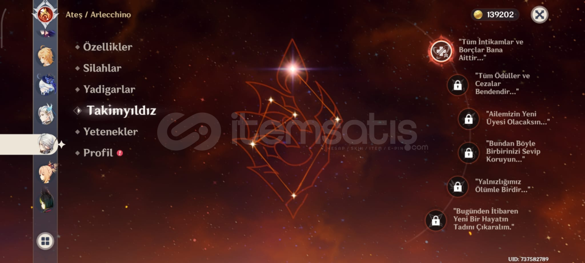 hesap sslerde görüldüğü gibidir. özenle buildler dizilidir. neredeyse herkesin isteyeceği karakterler vardır.raiden ve silahı , arlechino ve silahı , you mia ve silahı vardır.bolca 5 yıldız ve etkinlik silahları mevcut ve cons5 tir. alana hayırlı olsun.bennet, sara , chevreuse , xiangling , xingqiu c6 , ororpn c5 ve diğerleride c4 c5 yazmadım hepsini