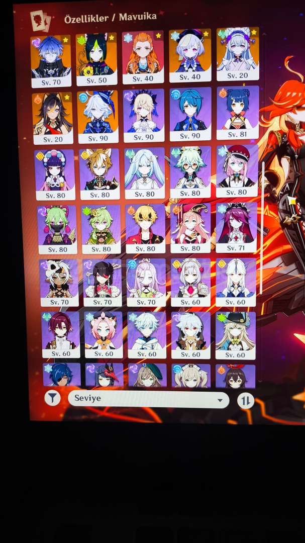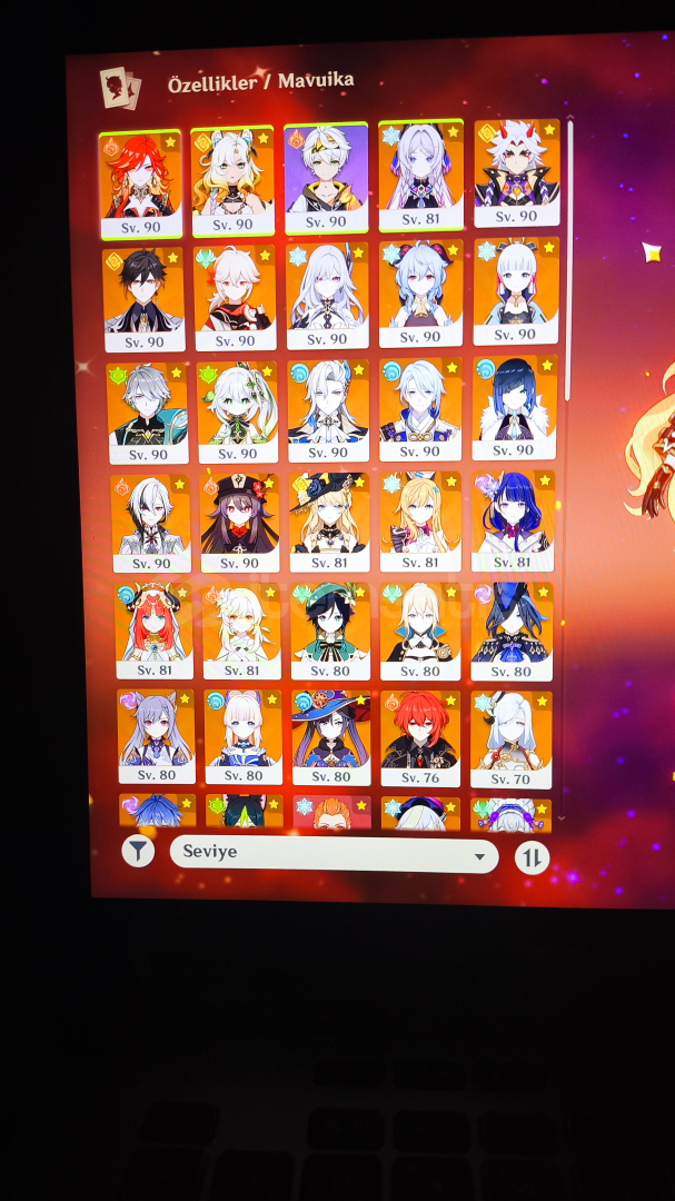 Maviuka , Neuvilette , Furina , Skirk , Flins gibi OP karakterler vardır ve çoğunun imza silahı mevcut c1: Gaming, Amber, Kaeya,c2: Sayu, Mika, Freminet, Dahlia, Xinyan, Sethos, Gorouc3: Dori, Aino, Razor, İansan,c4: Charlotte, Collei, Sara, Kaveh, Candacec5: Lisa, Yun jin, Lynettec6: Layla, Yaoyao, Kachina, Beidou, Xianling, Bennet, Ninguang, Noelle, Chongyun, Diona, Heizou, Sucrose, Yanfei, Rosaria, Thoma, Faruzantatil köyü ve nod krai 3. bölgeye ...