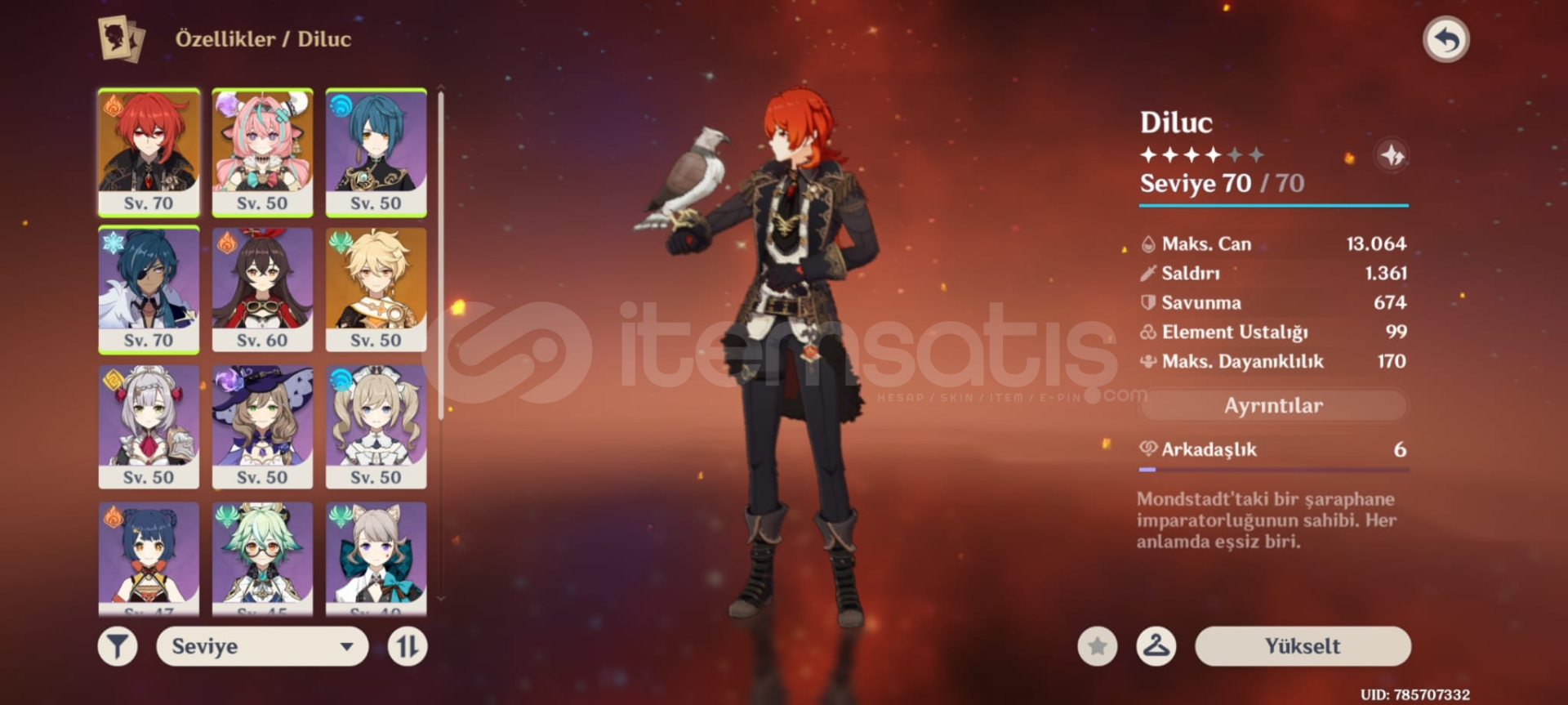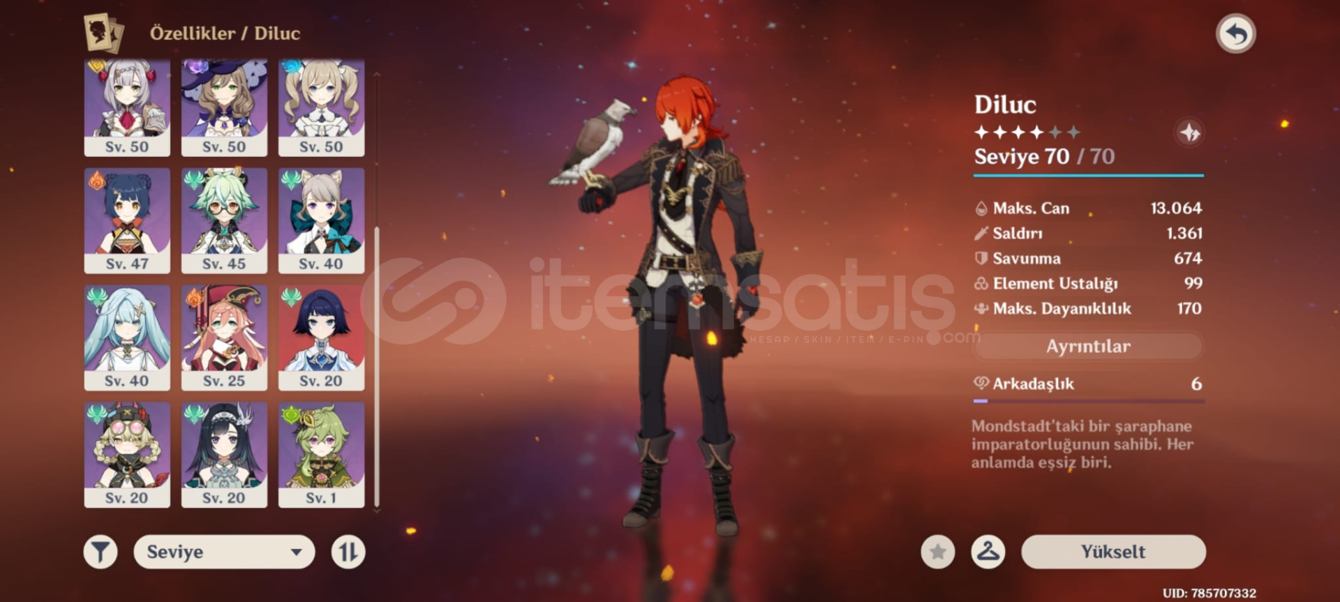 5 Yıldız Diluc ve Varesa mevcut Hesap mail yoluyla size bağlanır tamamen sizin olmuş olurAyrıca hesapta bir çok başarım ve görevler aktiftir çok rahat primogems kasabilirsiniz.