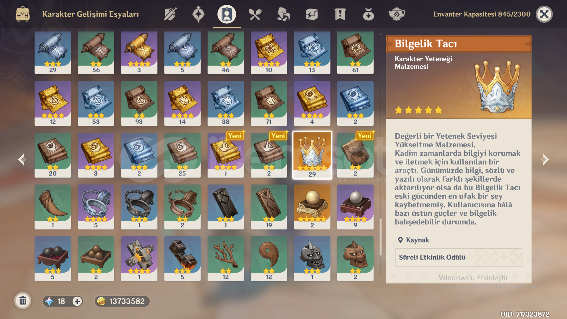 Not : 2 Hesapta Avrupadır.hotmail hesabıyla verilecektir.Wuwada (45 seviye)S3 Qiuyuan + silahBrant + SilahPhrolova + silahGenshinde (56 seviye)NodKrai keşif : %37 diğer bölgelerin tümü 90 ve 100Arlecchino + SilahRaiden + SilahMualani + SilahEmily + SilahNahidaYelanKazuha + iz efektiFlins4* C6 KarakterlerBennettXianglingChevruseYanfeiShikanoin Heizou4* C5 KarakterlerLaylaRosariaCandace4* C4 KarakterlerBarbaraAinoNingguang4* C3 KarakterlerDoriKachinaLynetteBeidou...