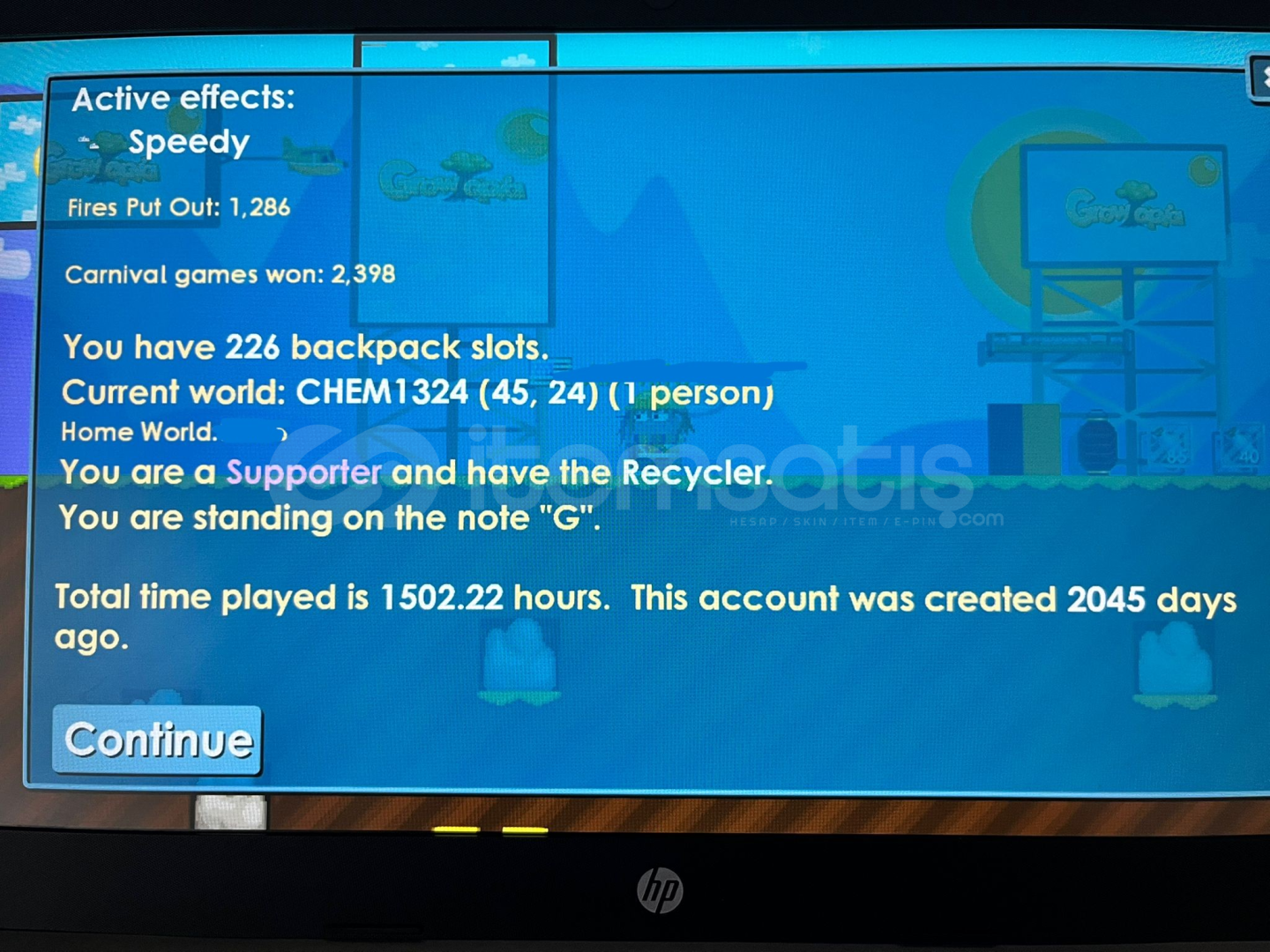 58 LVL MAİN HESABIMI OYUNU BIRAKTIĞIM İÇİN SATIYORUMHESAPTA BİRÇOK DÜNYA VARDIR dünyalarda itemler var orneğin bazi worldlerde pepper farm var 1 adet depo worldu var orada itemler varENVANTERDE İTEMLER VARDIROCAK AYININ GROW PASSI AKTİFTİR1502 SAAT VE 2045 GUNLUK HESAPTIR226 ADET BACKPACK SLOTU VARDIRGOLDEN PİCAXE - ZEUS - MERCY WİNG - GOBLİN - SNOW AURA MEVCUTTURHESAP SUPPORTER HESAPTIRMAİL VE ŞİF...