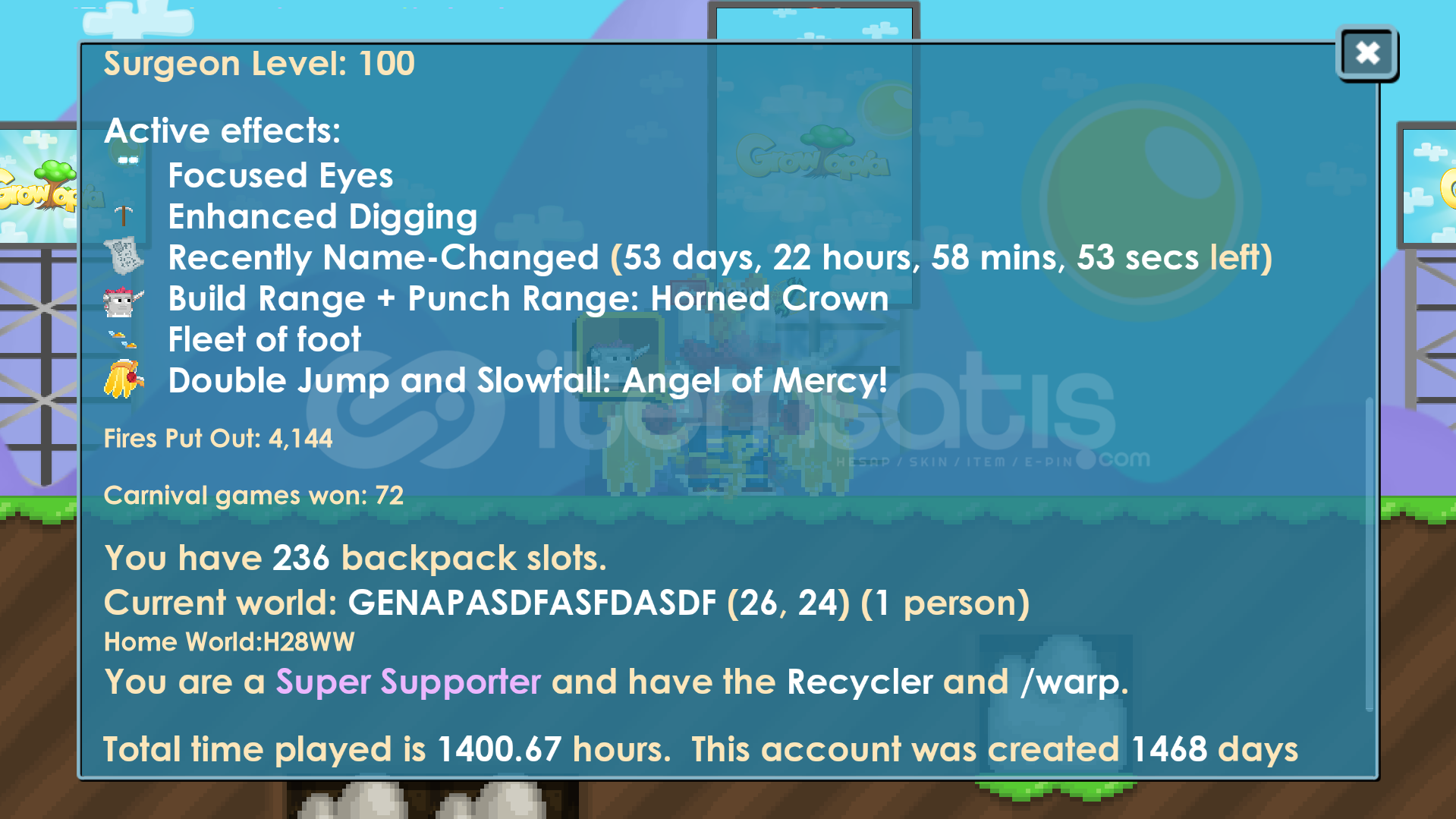 Hesap sizin mailinize aktarılıcaktır.Sorunuz varsa yazabilirsiniz.İçerik:Mercy WingFocused Eyes,Golden PickaxeZeusStar Captain Hat6 Deluxe World Spray3 Gemini Ring3 Ring of Force1 Ring of Winds1 Ring of Nature2 Ring of Range