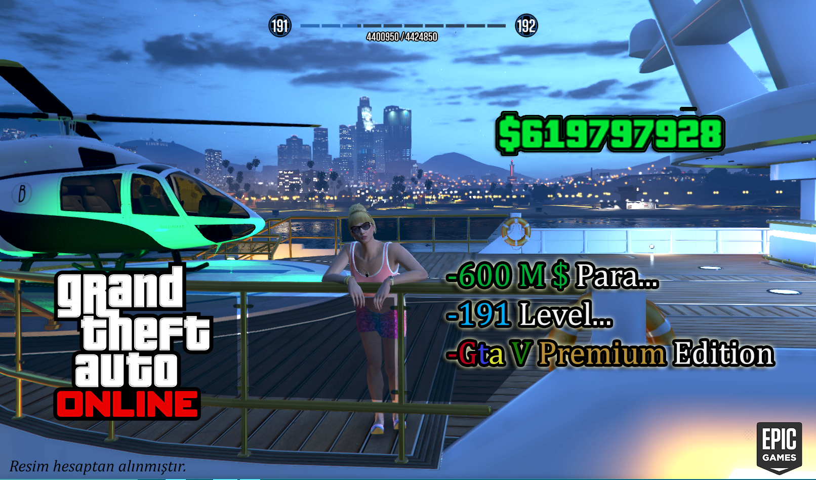 Grand Theft Auto V İlanımızın Özellikleri Şunlardır; Hesap'ta her şeyi kendi zevkinize göre dizayn edebilirsiniz. (Ev, Araba Vb.)Oyunu Epic Games üzerinden teslim etmekteyiz.Gmail, Social Clun, Epic Games hesaplarını vermekteyiz. (Şifre Değiştirilebilir.)Kapak fotoğrafında gördüğünüz her şey hesapta mevcuttur.Geriye Keyifle oynamak kalıyor :)