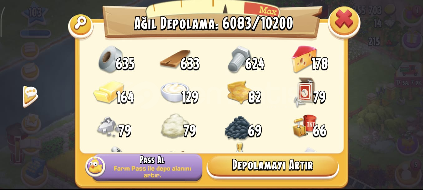 HESAP;103 LEVELDİR10.200 AĞILI VARDIR İÇİNDE KARIŞIK MALZEME VARDIR3050 AMBAR VARDIR+10 MİLYON ALTIN VARDIRDEKORASYONU HARİKADIRSAĞ ARAZİ FULL AÇIKTIRSOL ARAZİ BİR KISMI AÇIKTIRFARM PASS DIŞINDAKİ HAYVANLAR AÇIKTIRKASABA 7 LEVELDİRAKTİF OLARAK OYNANMAKTADIR BU NEDENLE ÜRÜNLERDE CÜZİ DEĞİŞİKLİK OLABİLİRVE BİRÇOK ÖZELLİ&...
