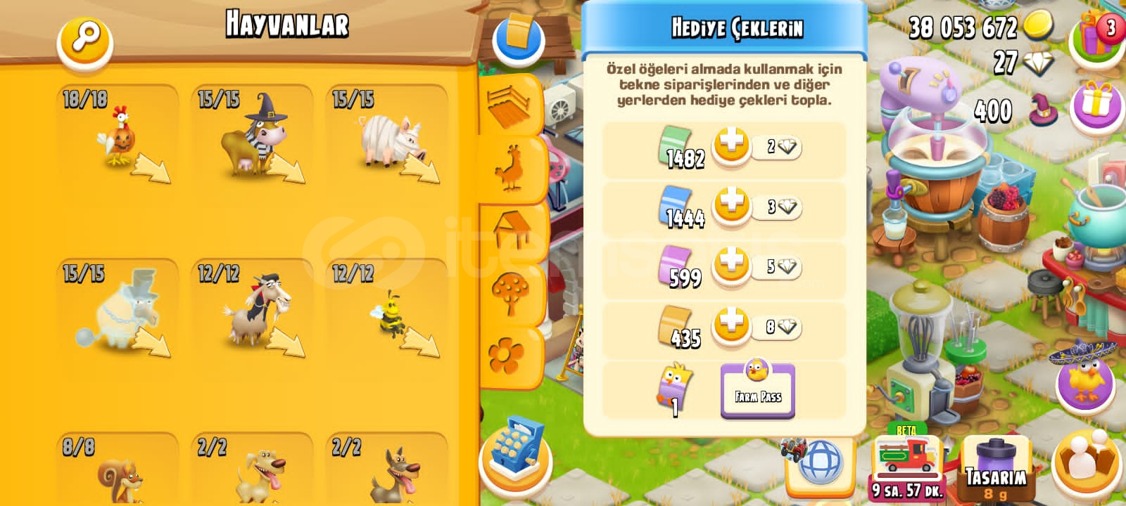 108 Level El Emeği HesapAğıl 6050 Ambar 520038 Milyon Altın+4000 Adet Hediye ÇekiKasaba 18 Level 4 Adet Kasaba HayvanıUzun yıllar emek verilmiş güzel hesapAlıcısına hayırlı olsun