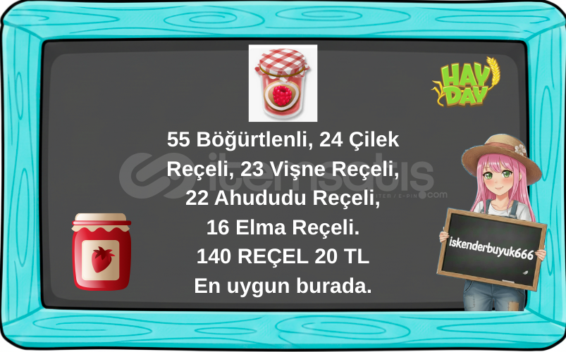 🍓 Hayday 140 Adet Reçel Satışı – Sadece 20 TL! 🧡 Uygun fiyat, hızlı teslimat ve güvenilir satış! ✔️Sipariş sonrası hemen pazar kurulumunu yapıyorum ve 140 adet reçeli 1–5 dakika içinde eksiksiz teslim ediyorum. Stok hazır 📦 • Güvenli işlem 🤝 • Hızlı dönüş ⏱️Uygun fiyatı kaçırma —...