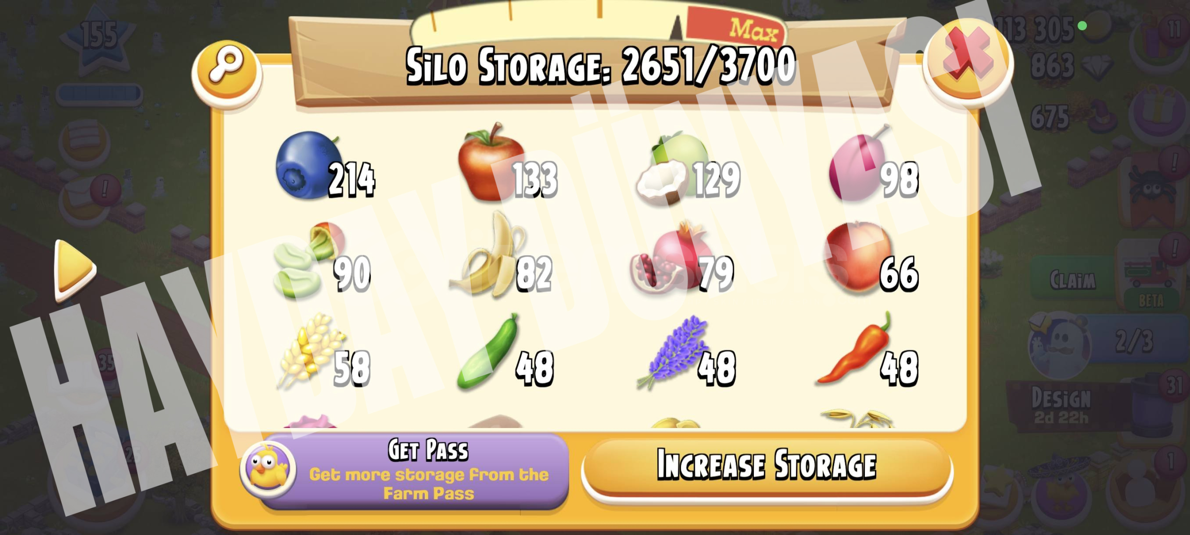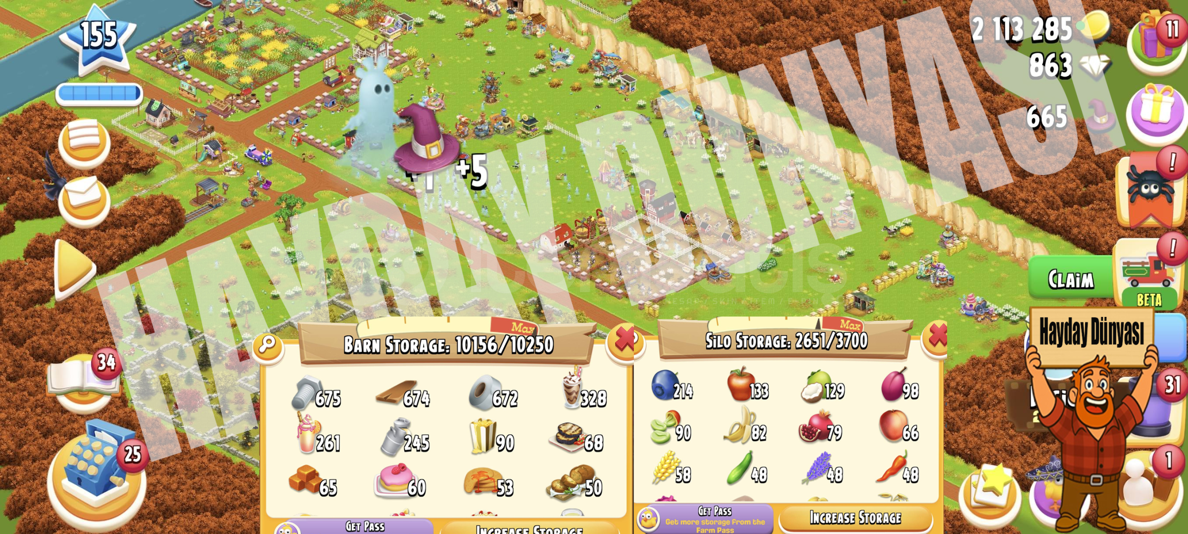 🐓 Hesap Bilgileri🔥 Seviye: 150+🐑 Ağıl: 10000 (670 CIVATA 670 KALAS 670 BANT DEĞİŞEBİLİR AMA BU DÜZEYLERDE)📦 Ambar: 3700(ORTALAMA DEĞİŞEBİLİR)💰 Coins: 2M+💎 Elmas: 800+KASABA 30+ LEVEL🐄 Hayvanlar: Çoğu var🌾 Arazi: Ana bölge neredeyse hepsi açık, yan bölge kıs...