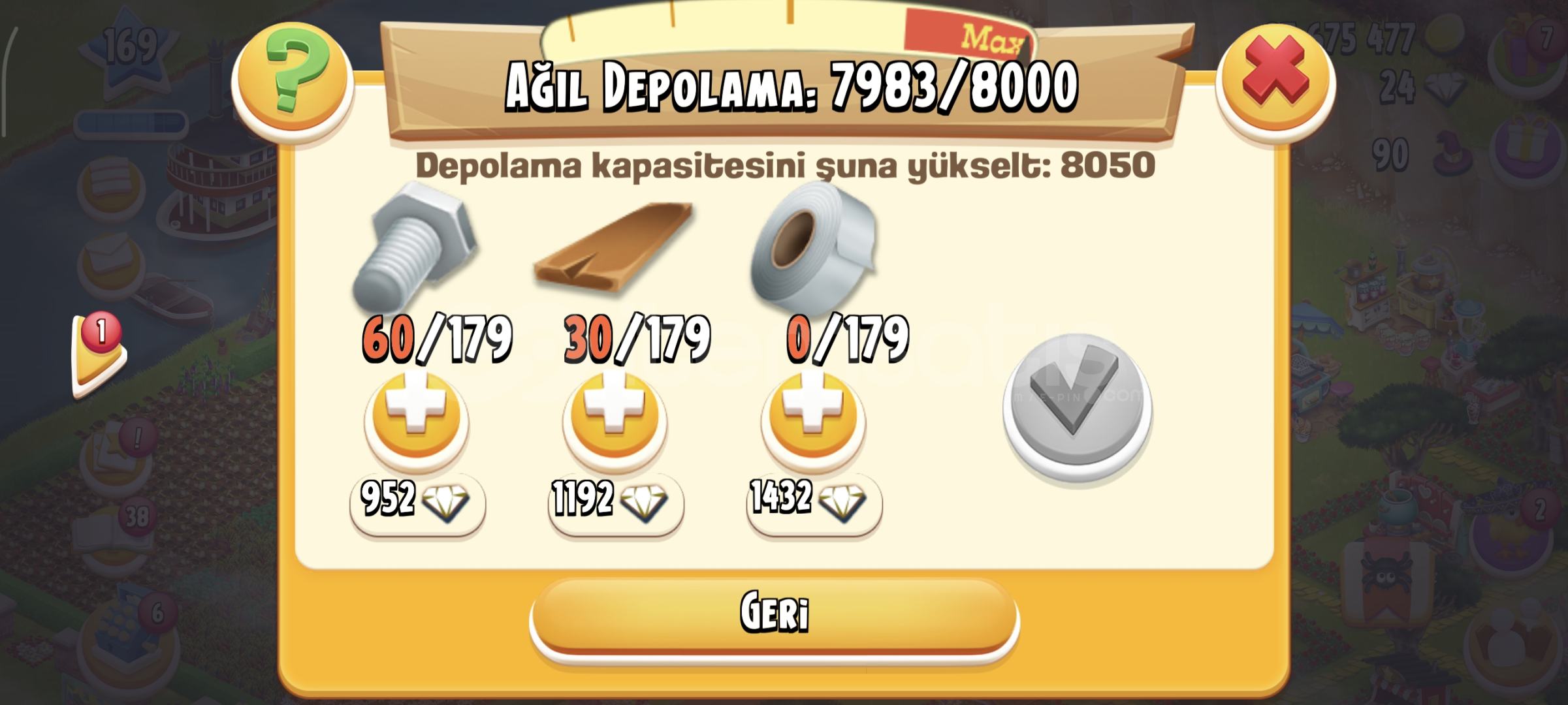 27.000.000 MİLYON OYUN ALTINI169. LEVEL8.000 AĞIL KAPASİTESİ4.400 AMBAR KAPASİTESİE-POSTA VE SİFRESİYLE VERİLECEKTİR