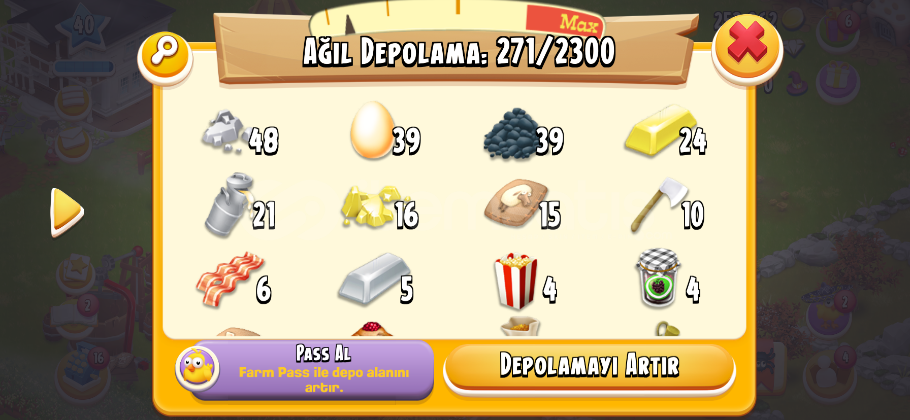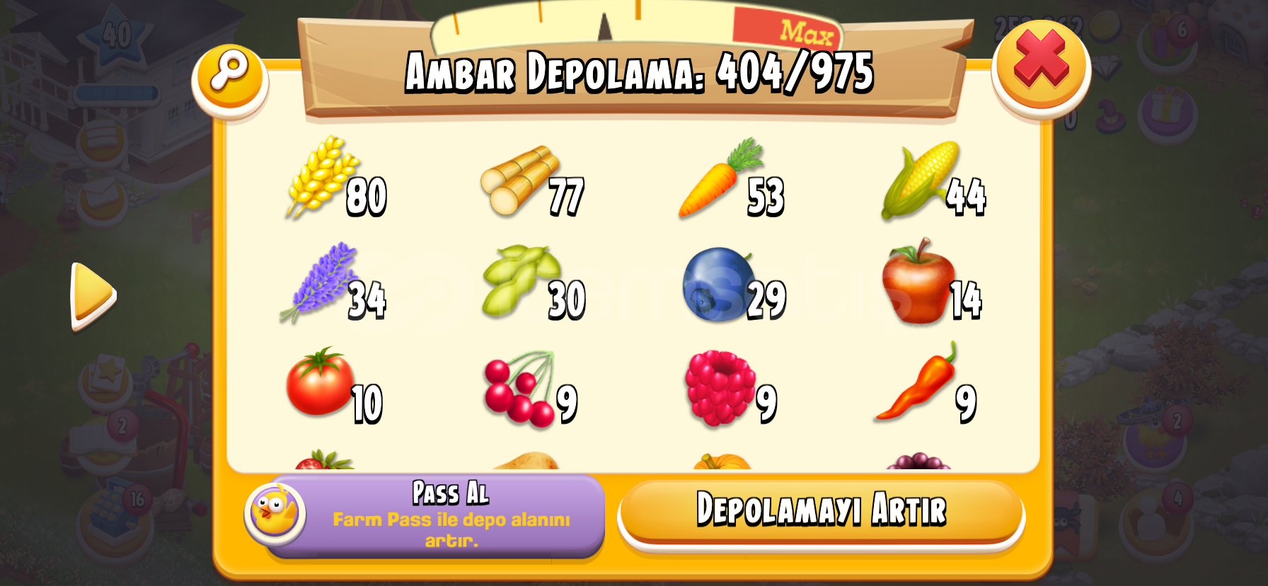 +2300 DEPOLAMA HAYDAY 40LEVEL FIRSAT ÇAR