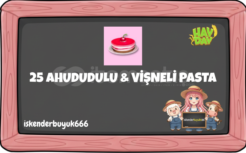 Merhabalar. Size 25 adet hayday oyununda ahududulu ve vişneli pasta teslim edeceğim.