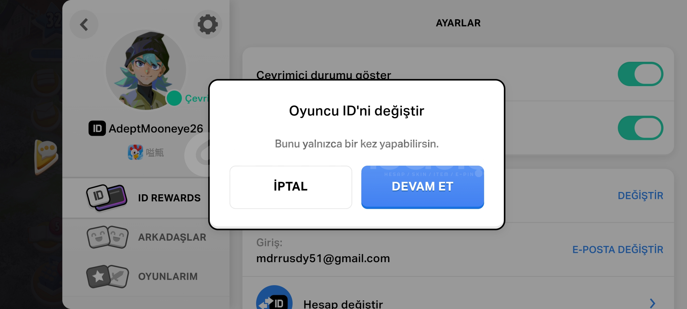 1 KERE SUPERCELL İD DEĞİŞTİRME HAKKI VARDIR.