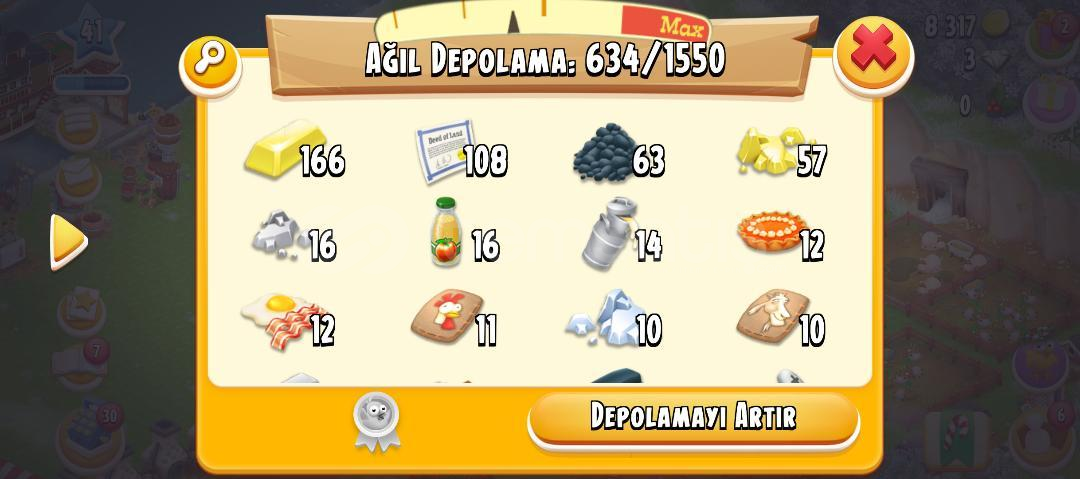 ‎(HESAP BOT HESABIDIR )‎‎HESAP İÇERİĞİ ‎‎-41 SEVİYE‎‎‎-8316 K PARA MEVCUTTUR ‎‎-3 ELMAS MEVCUTTUR ‎‎- ARAZİ BÖLÜMÜ RESİMDEKİ GİBİDİR ‎‎- AMBAR ALANI: 1000‎‎- AĞIL ALANI:1550- HESAP DEPO OLARAK KULLANILMIŞTIR ‎‎-HESAP DİREK SİZİN VERDİĞİNİZ  E'POSTA'NIZA  EKLENECEKTİR ‎‎DAHA FAZLA B&...