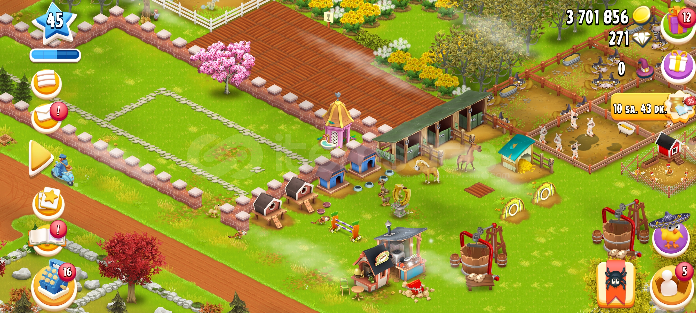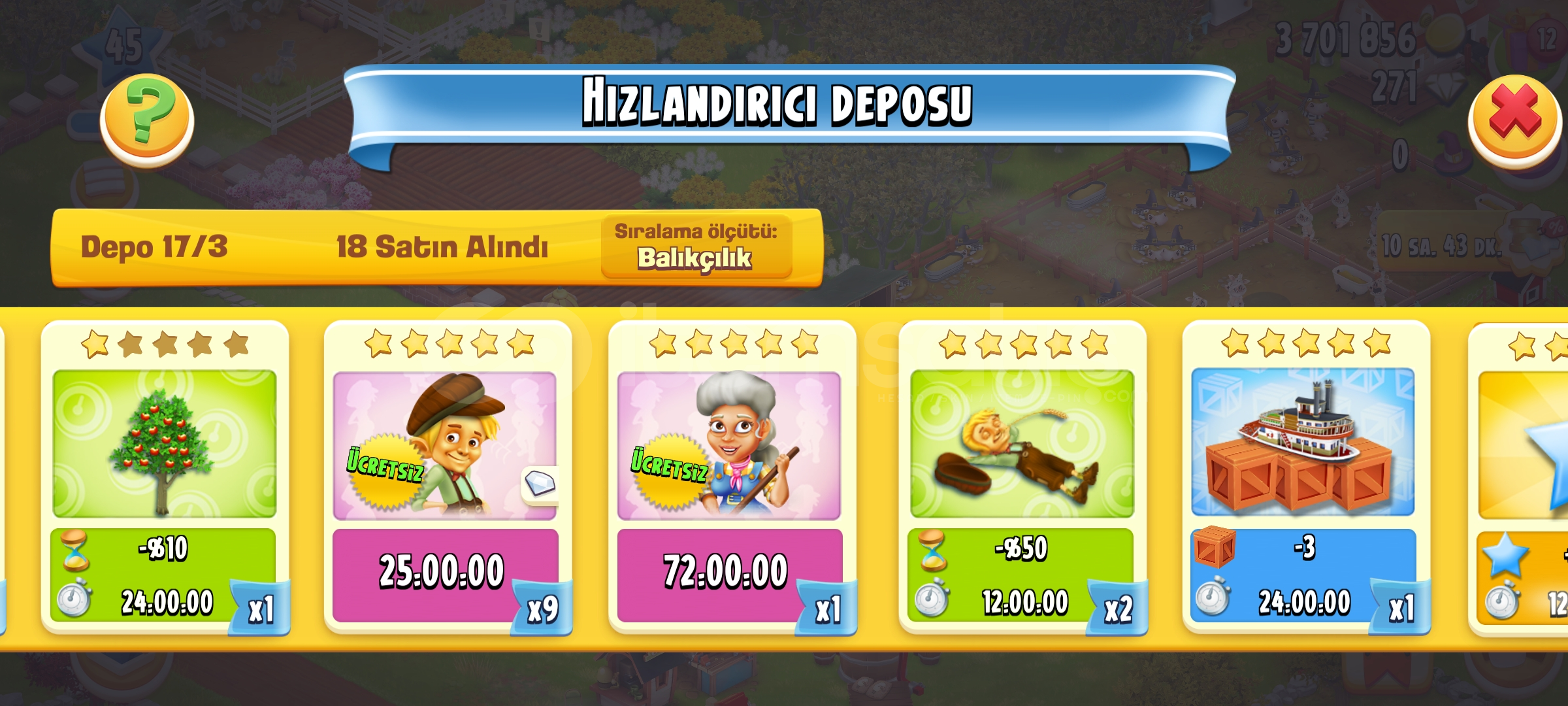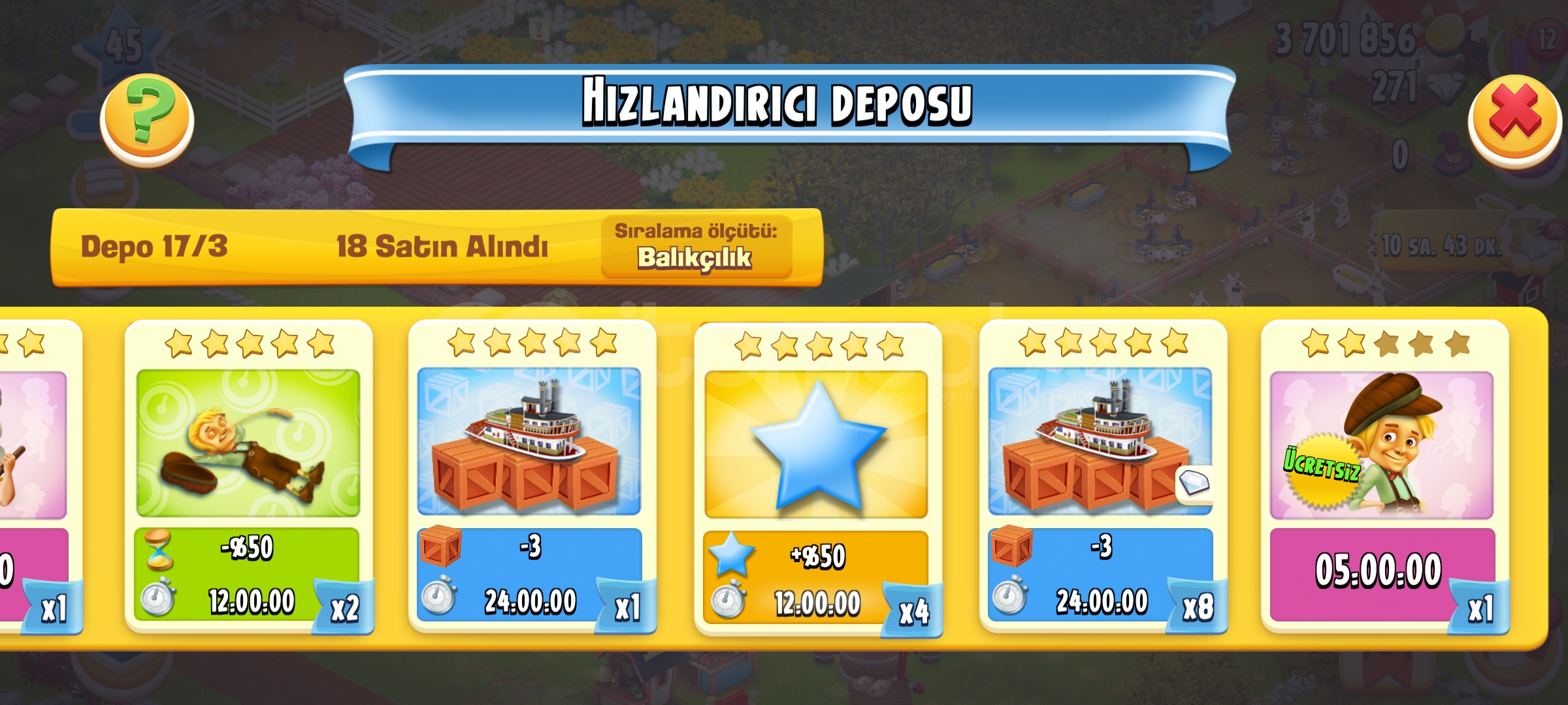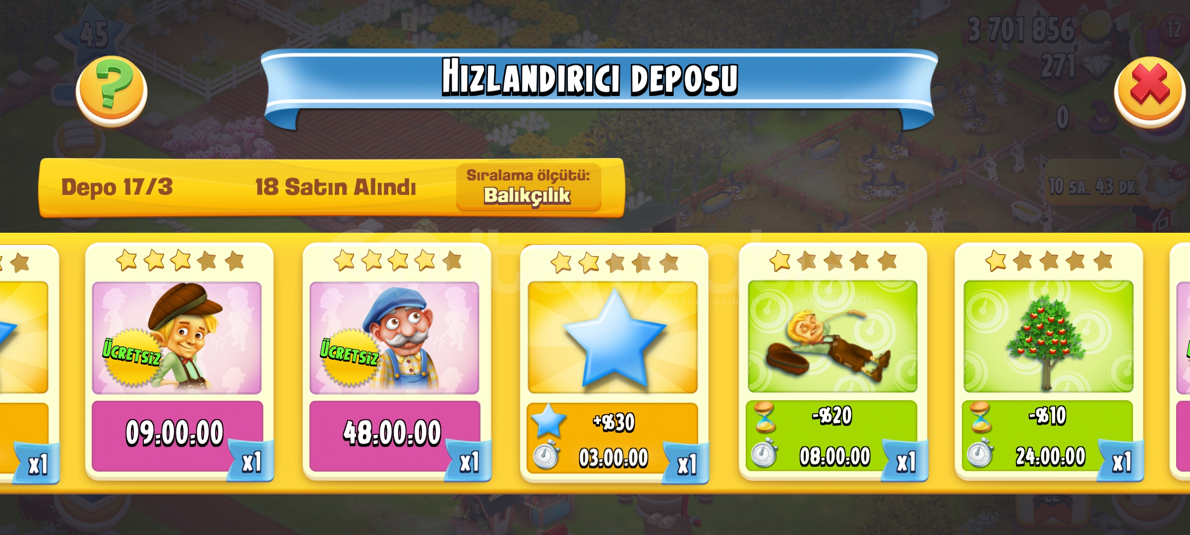 Hesap suanda 45 leveldedir tam dolu hesaptir icinde 4m para , 263 gem , hizlandirici deposunda bir suru hizlandirma ve s gibi bir cok sey vardir alana...